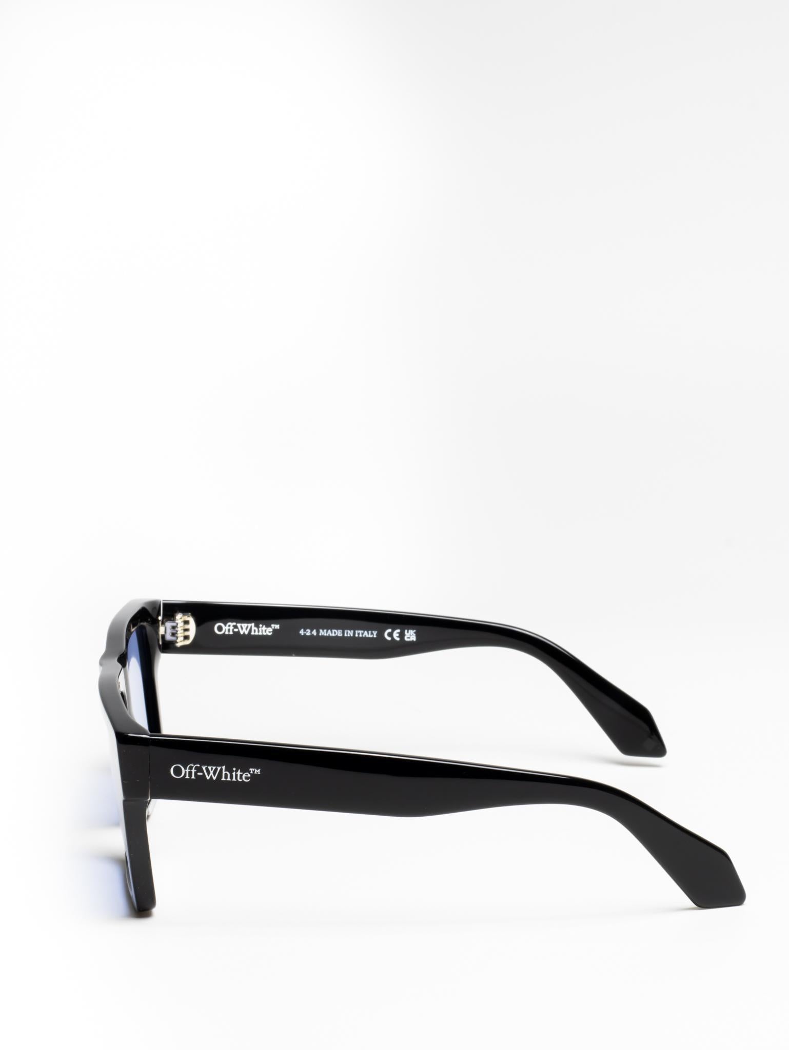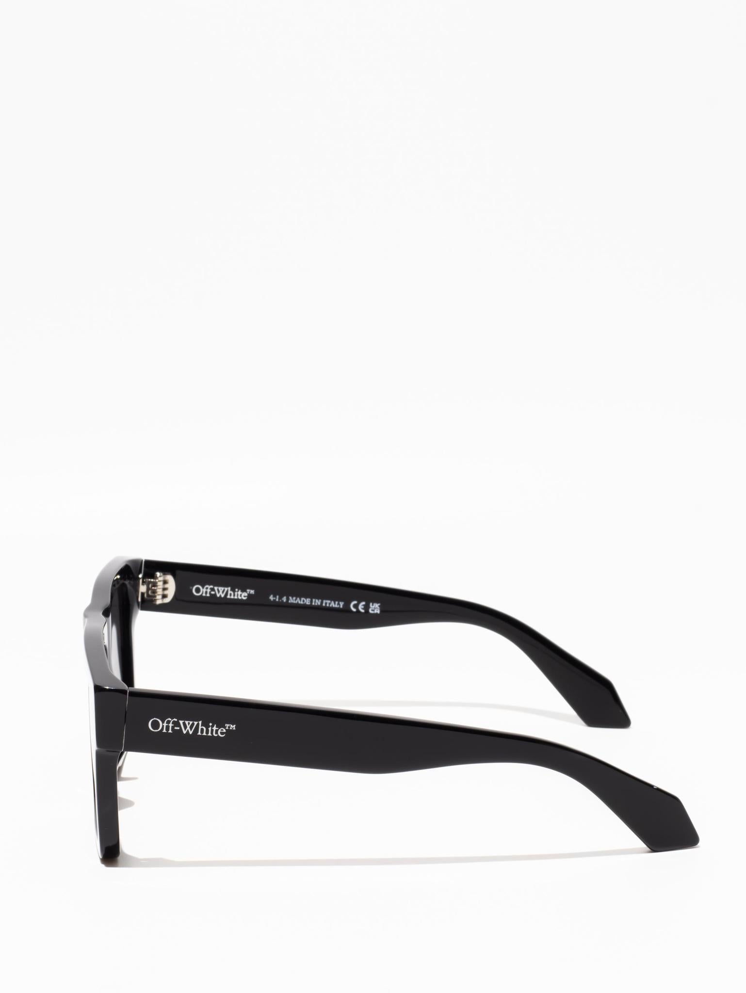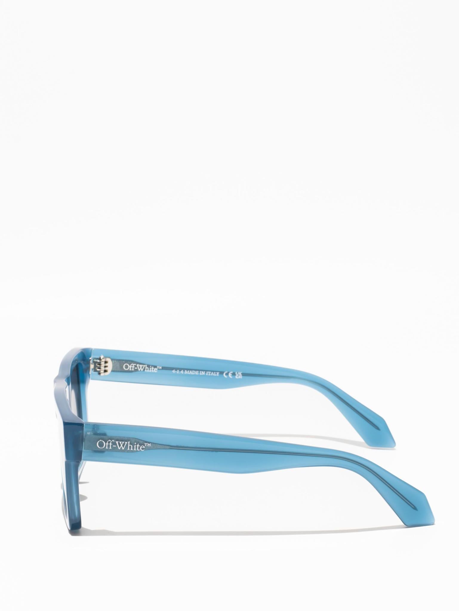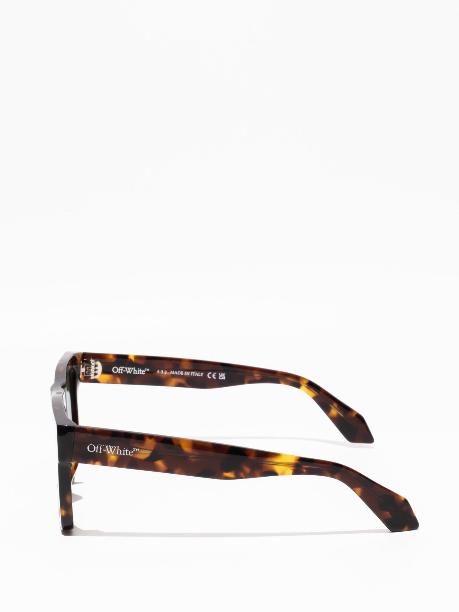 These acetate sunglasses feature an oversized geometric silhouette with a flattened top edge and elongated side tips. They are completed with signature quotation marks on the temples and metal logos on the arms. Made in Italy.