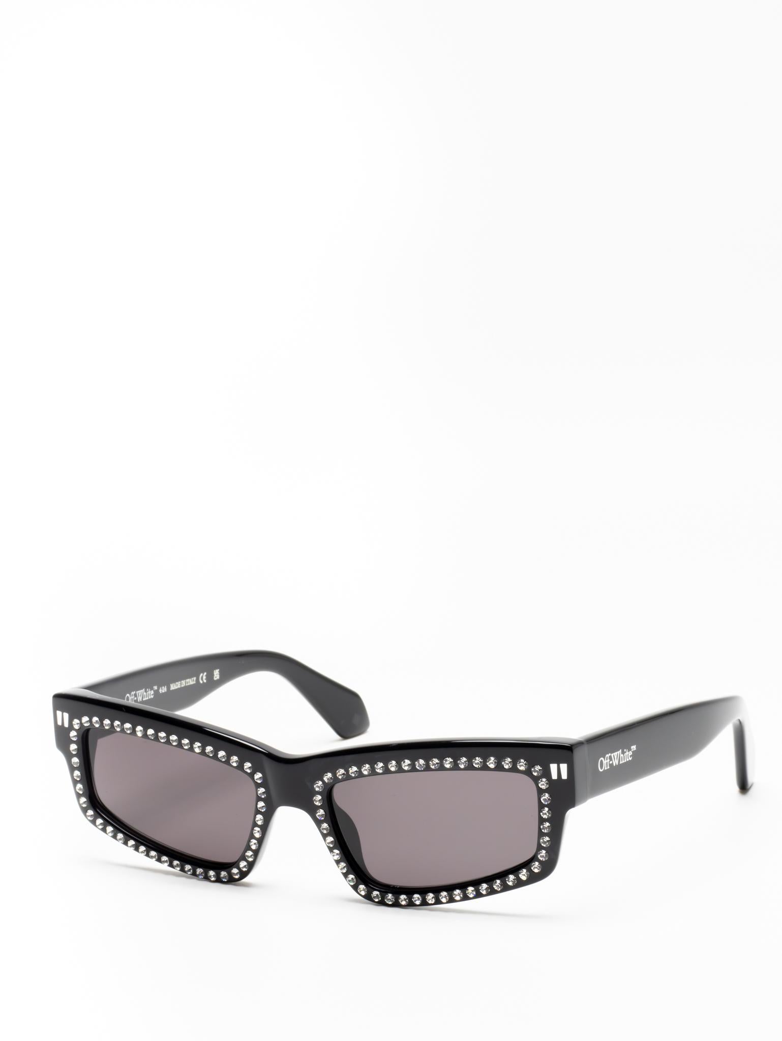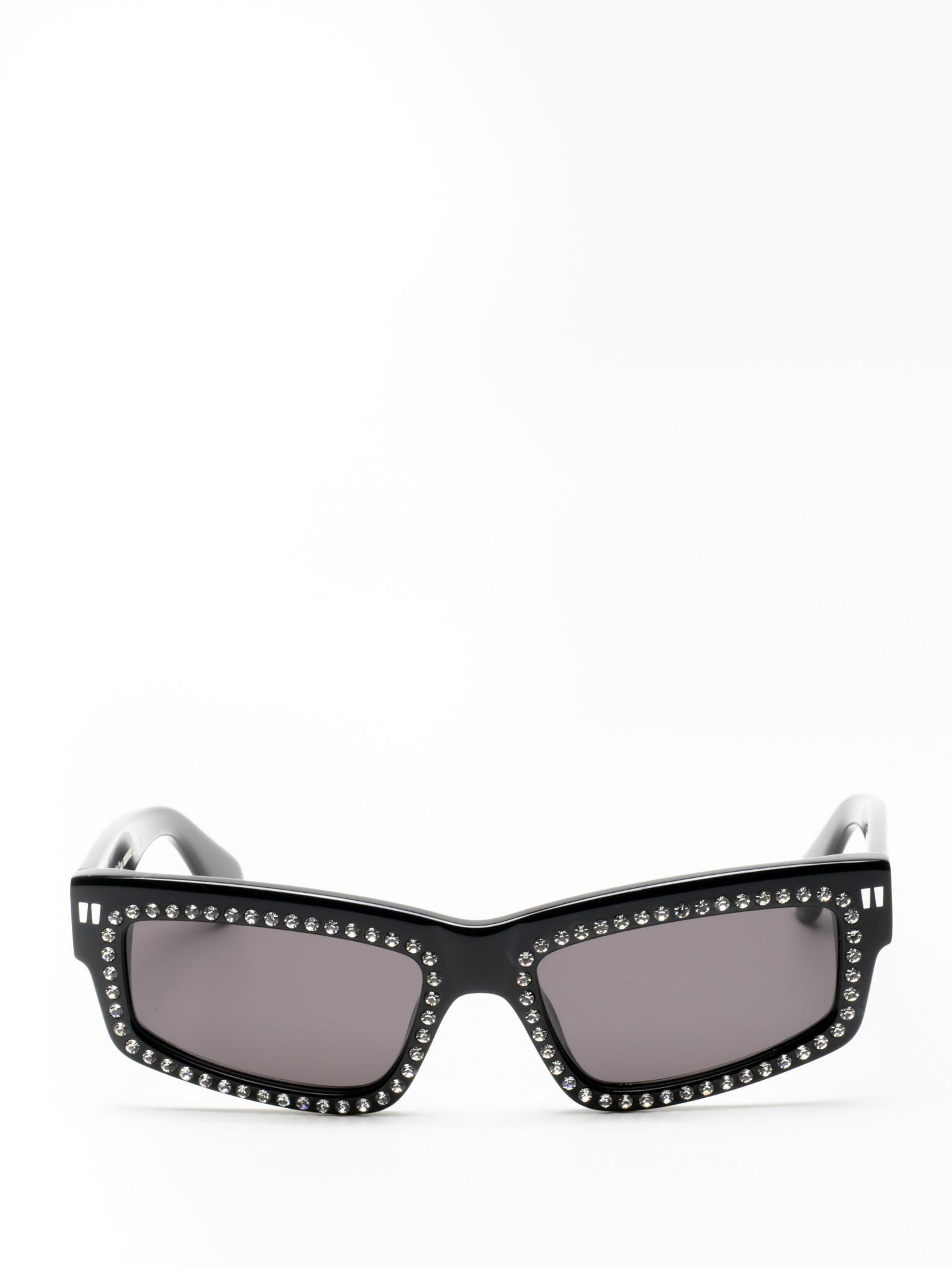 Embellished with strass, these acetate sunglasses feature a rectangular frame with stretched sides. They are completed with the signature logo on the arms. Made in Italy.