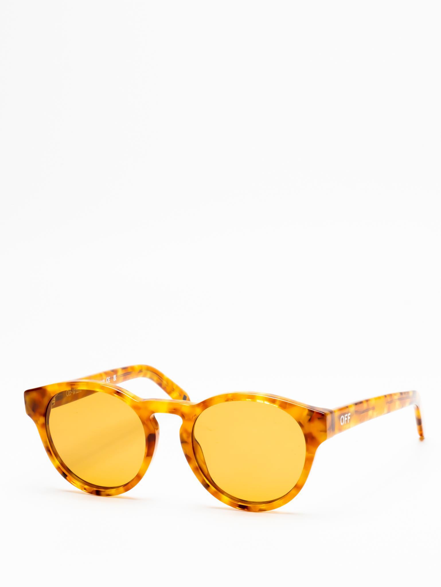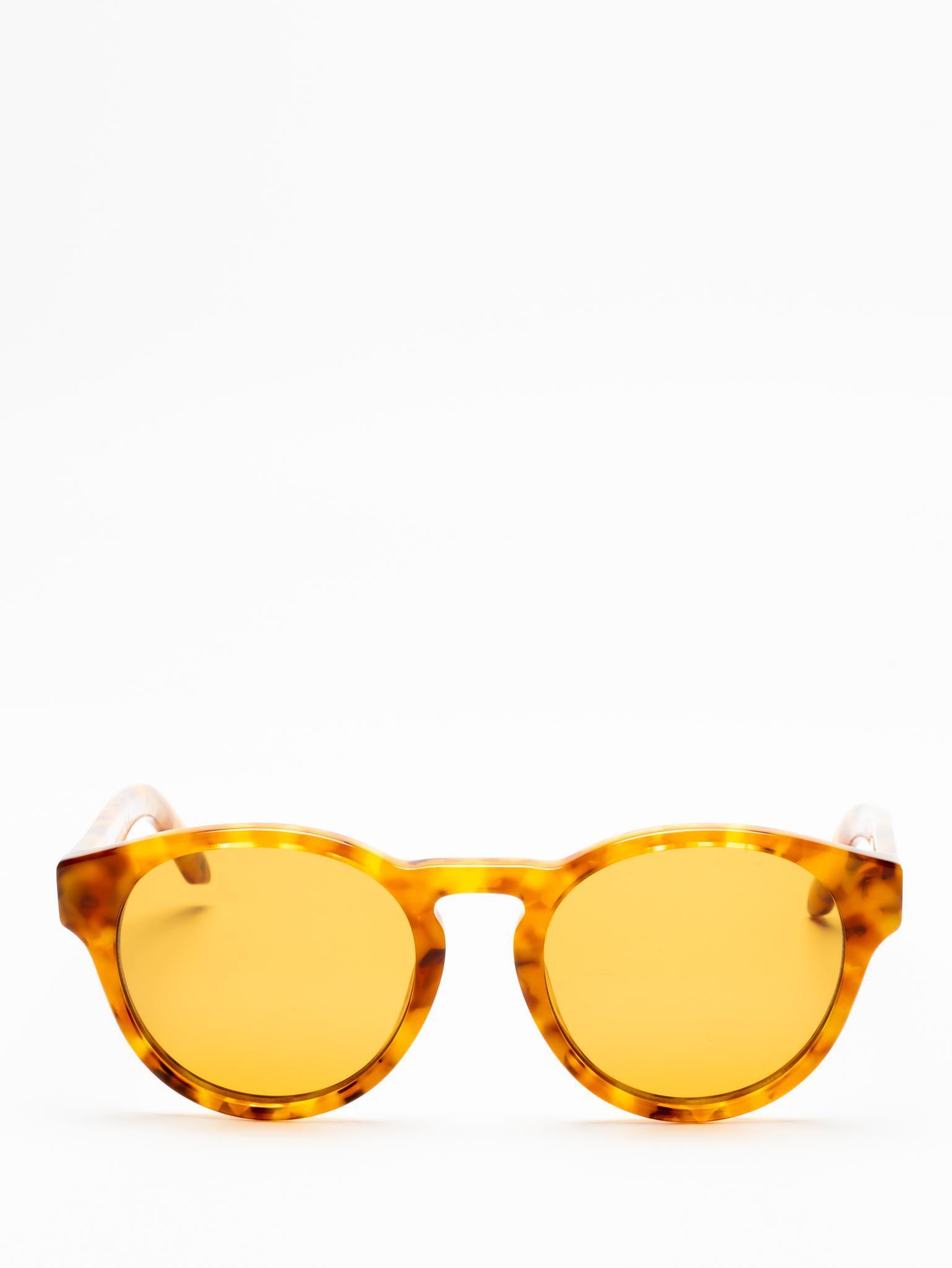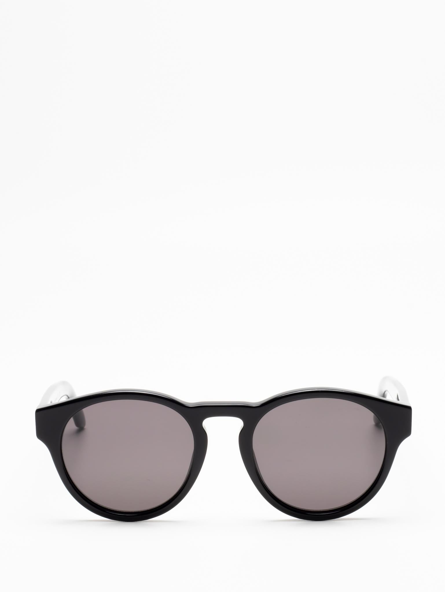 These acetate sunglasses feature a round silhouette with sculpted profiles and lightly encased lenses to enhance their depth. They are completed with the logo on the arms.