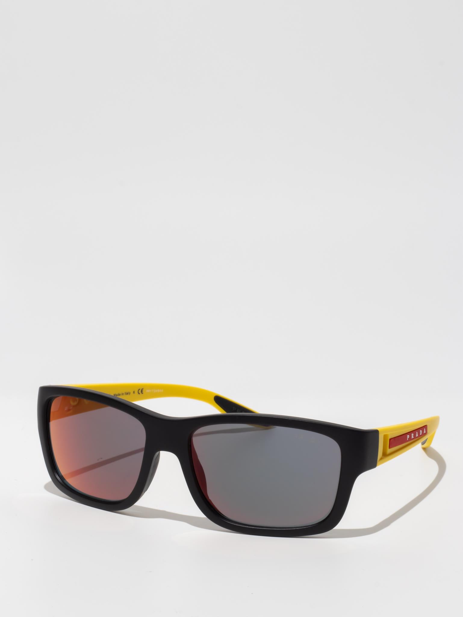 Sunglasses with a sleek, contemporary design. The ultra-light frame completely made of nylon fiber is characterized by strong rims and important thicknesses, while the temples enhance the sporty aesthetic and are decorated with the iconic Linea Rossa.
