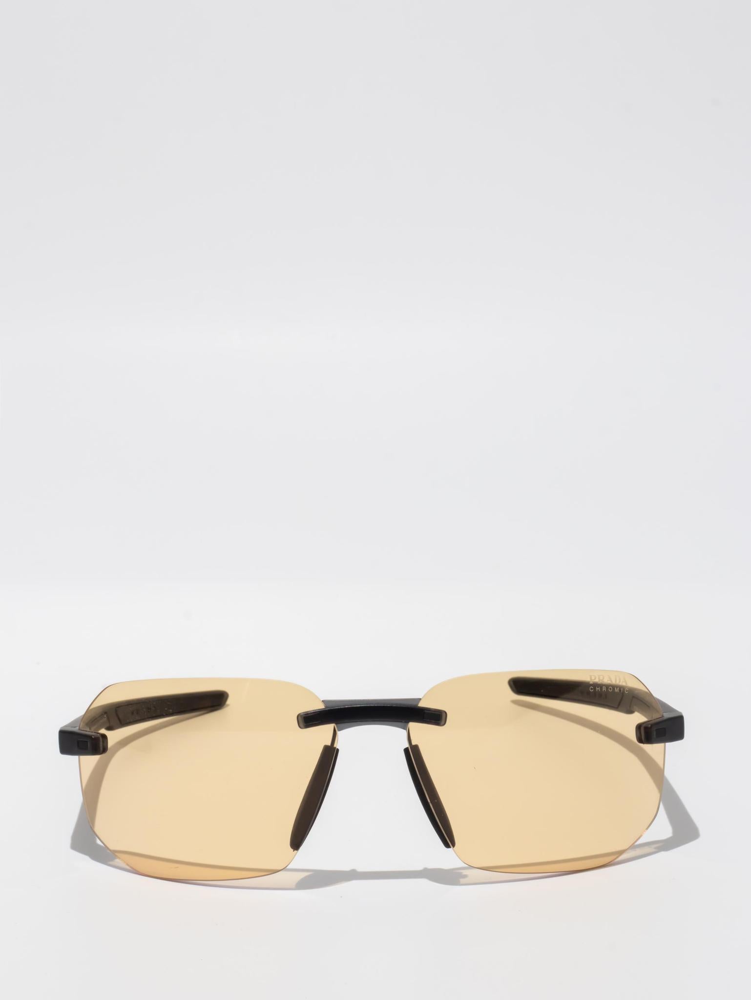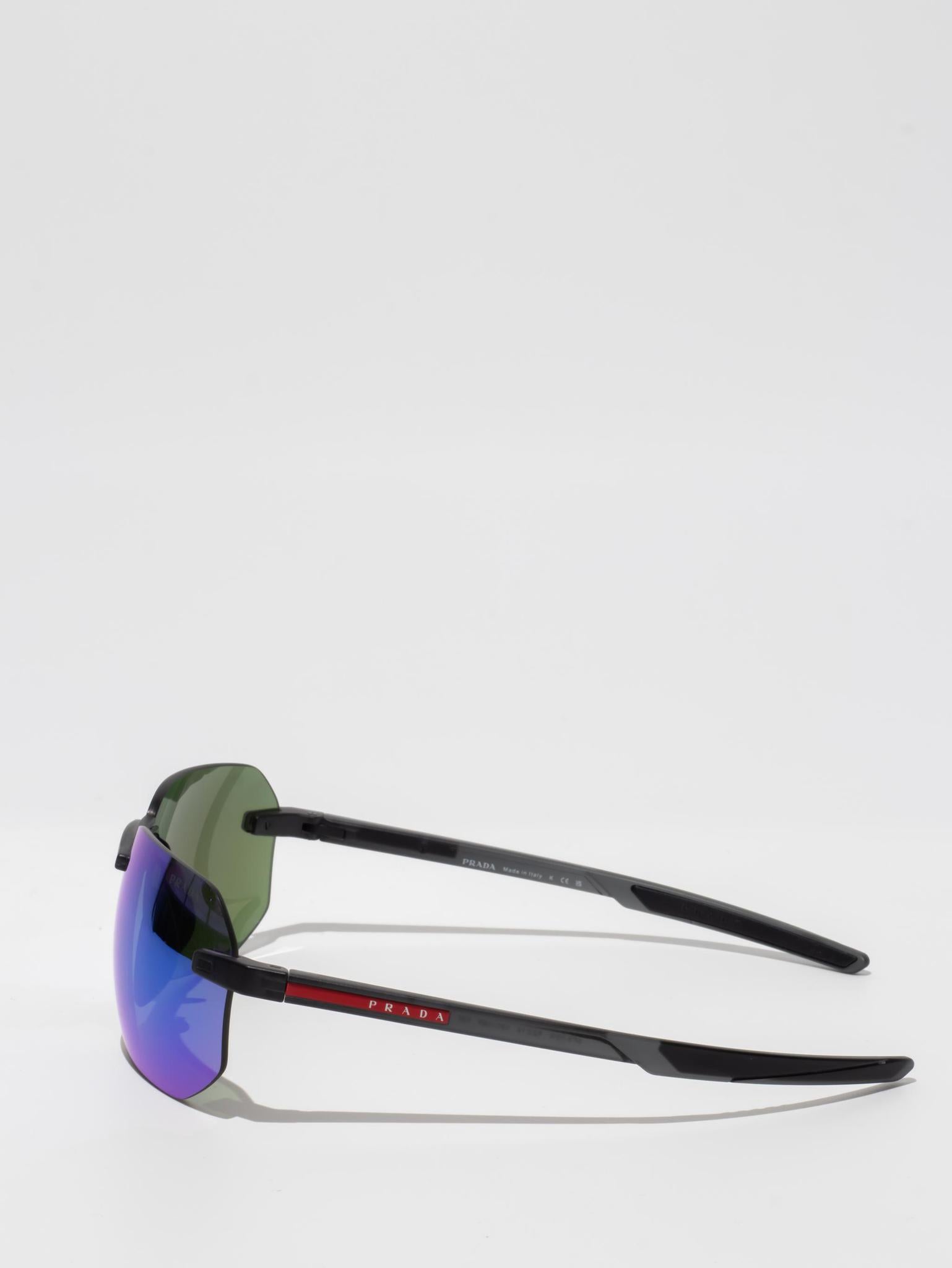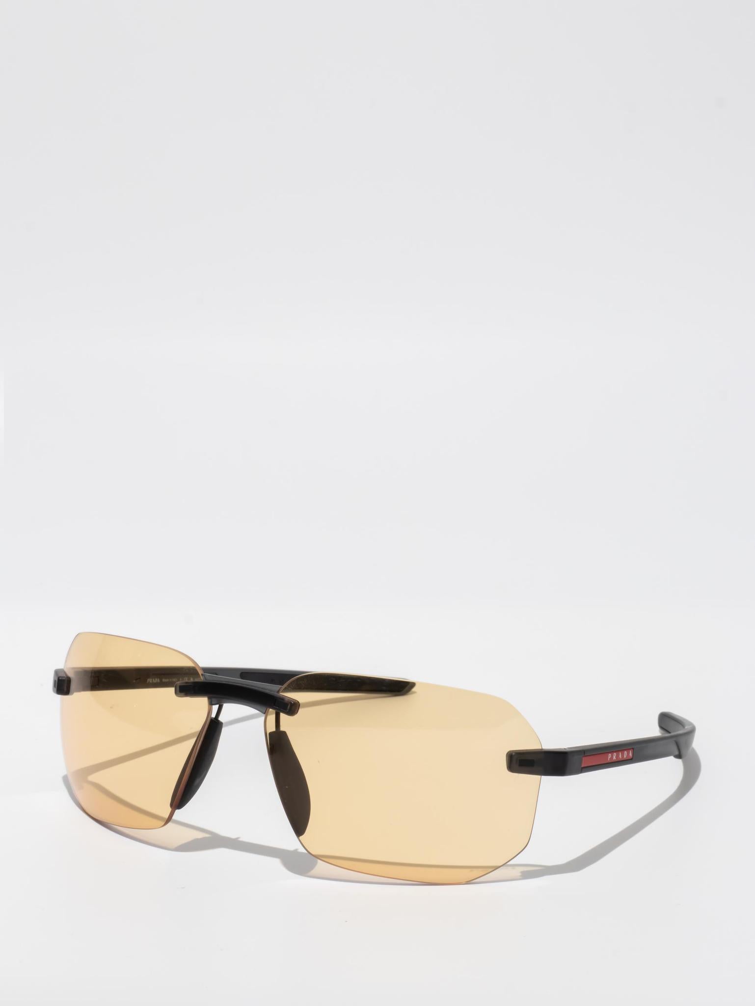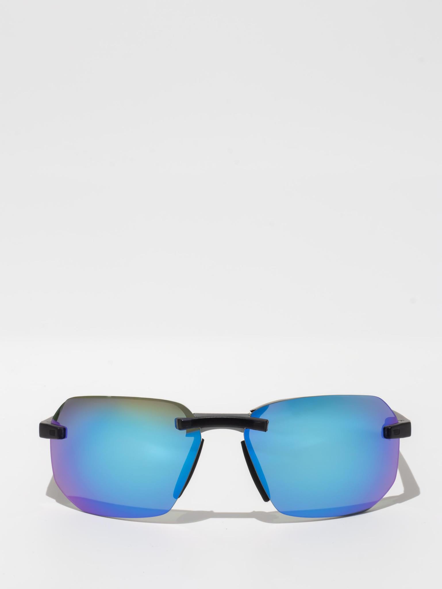 Sunglasses with an ultra-modern wraparound design. The front is characterized by curved, rimless lenses creating a light-weight feel. The straight temples are decorated with the iconic Linea Rossa.