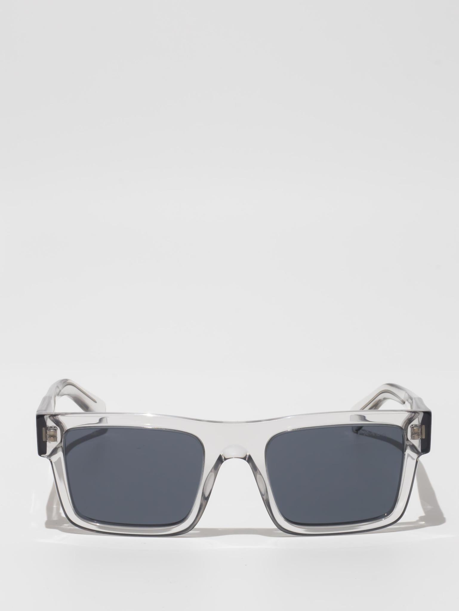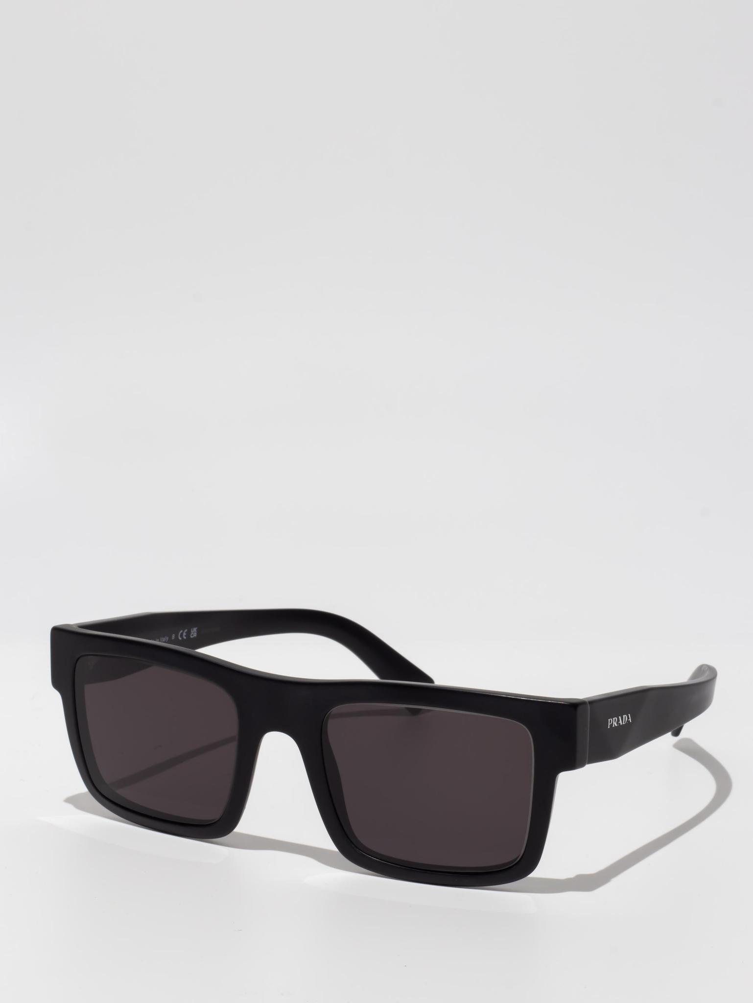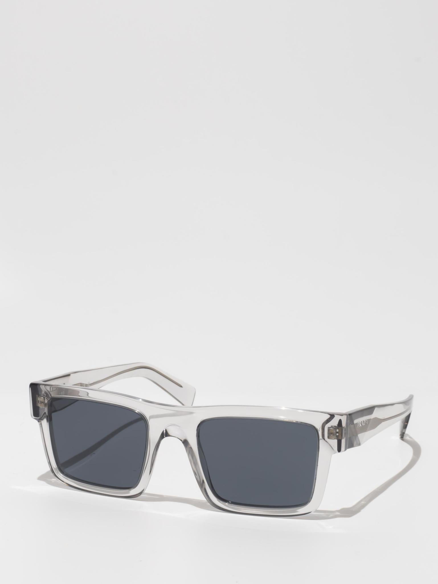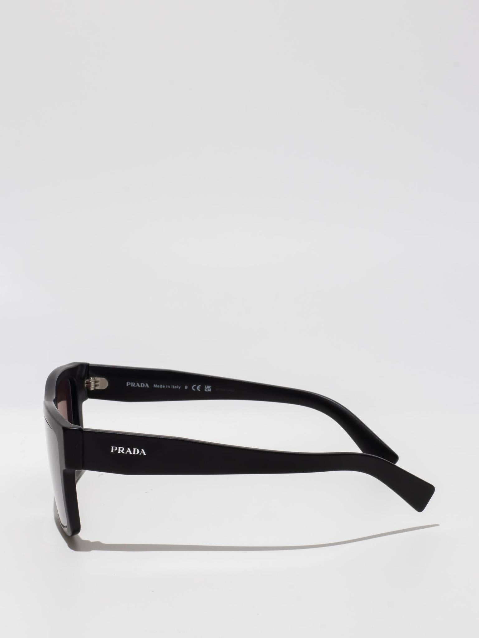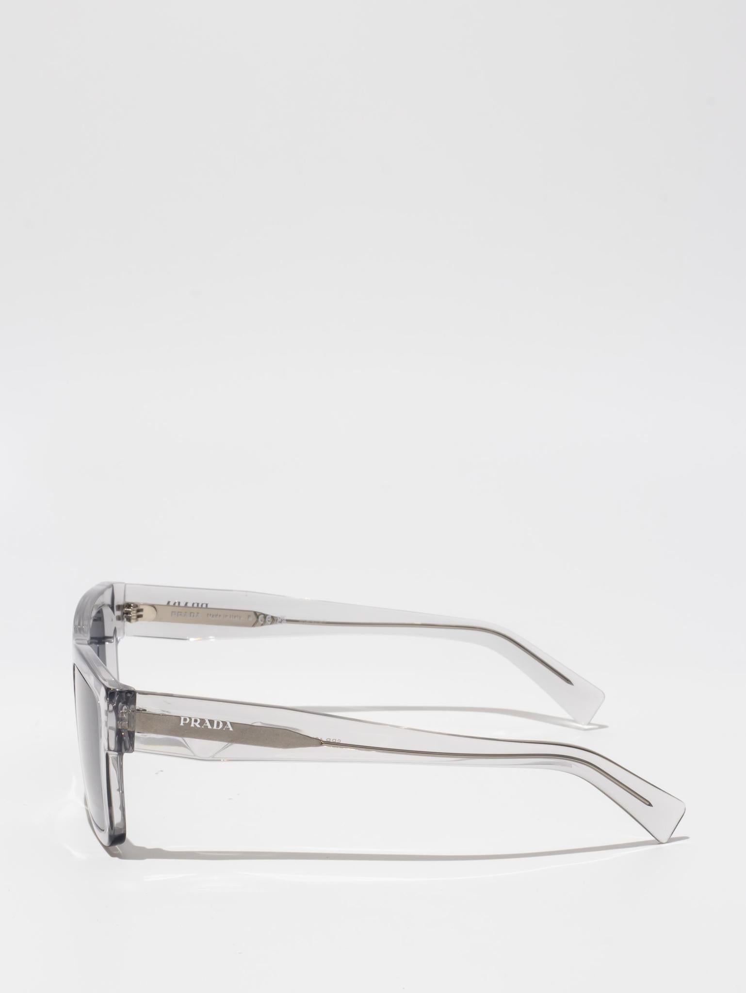 Rectangular acetate sunglasses characterized by strong lines and elegant, contemporary charm. The temples made with a sophisticated three-dimensional process are decorated with the Prada lettering logo.