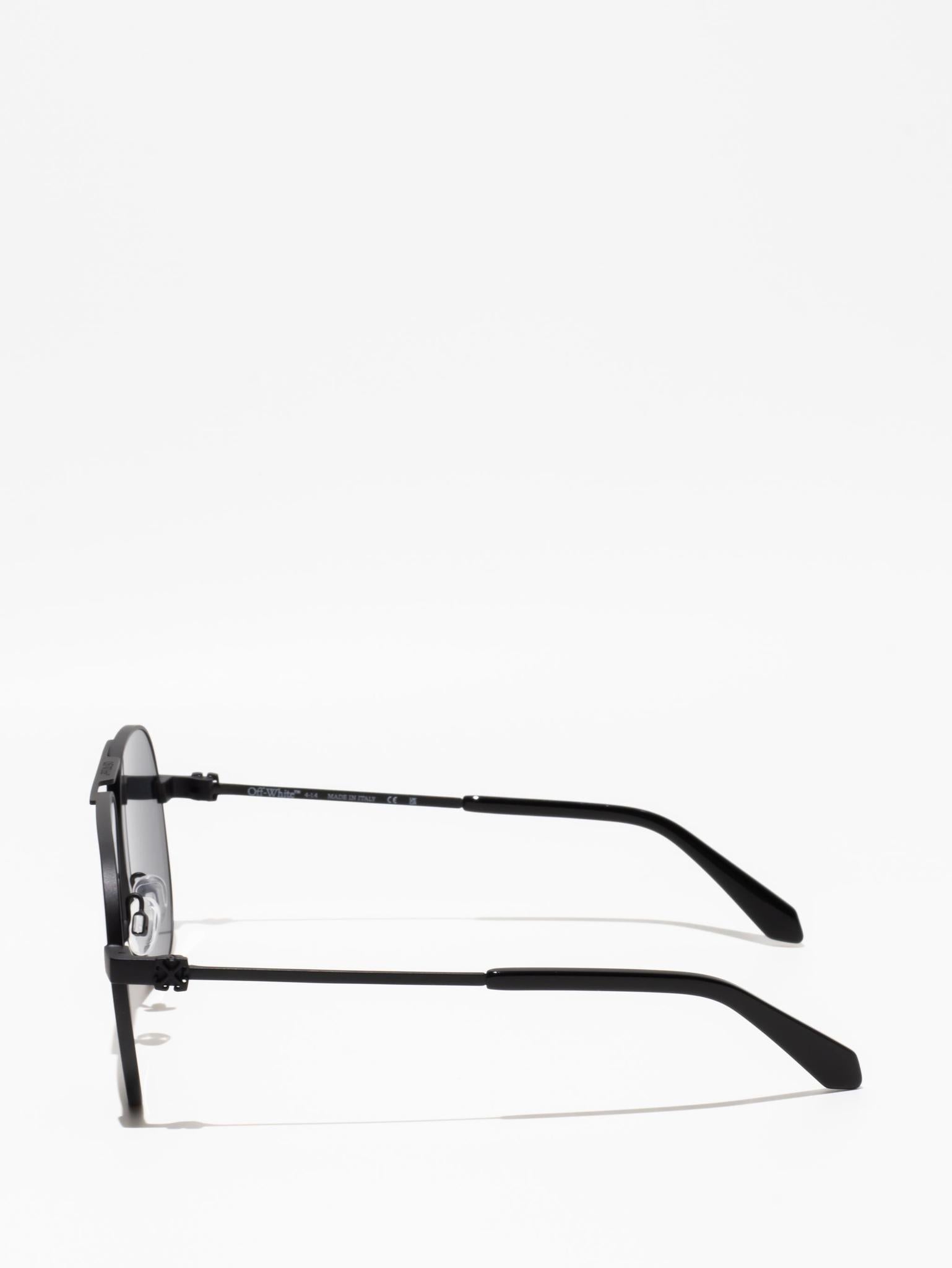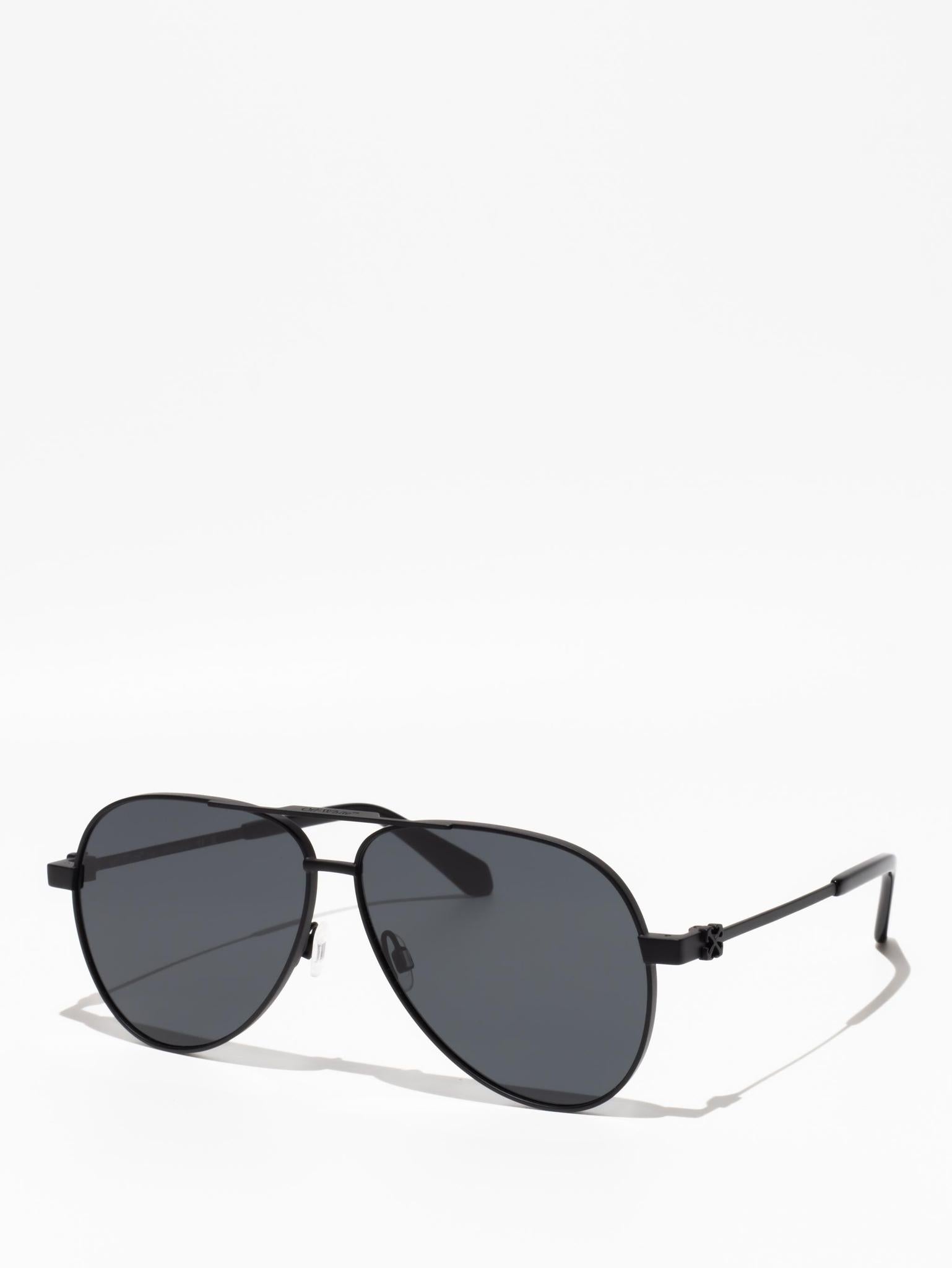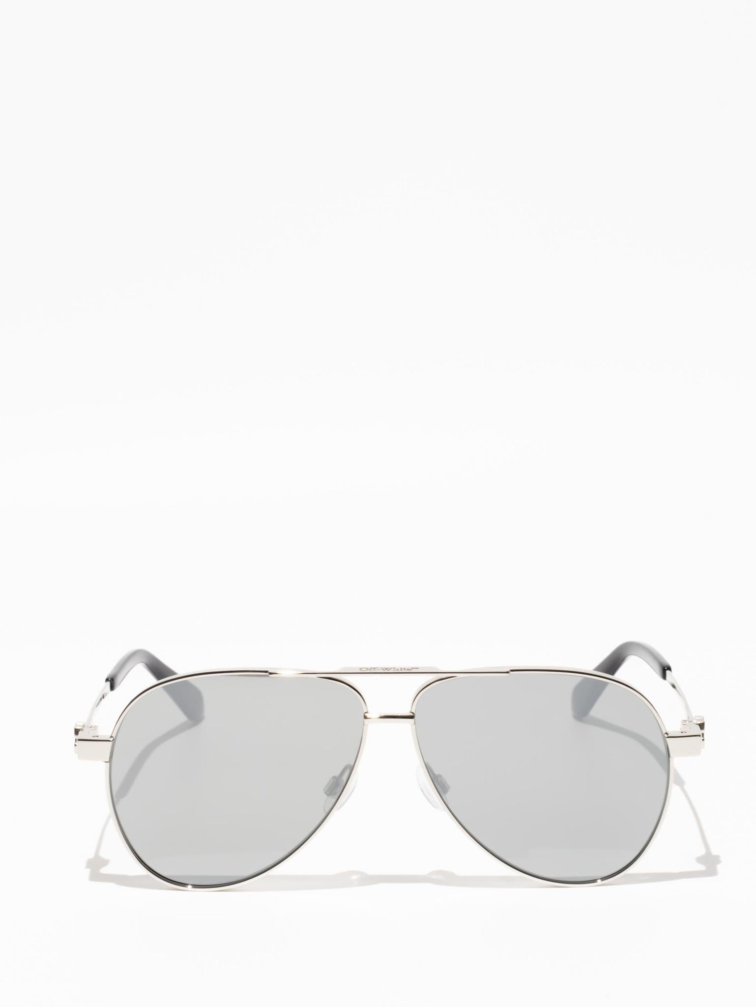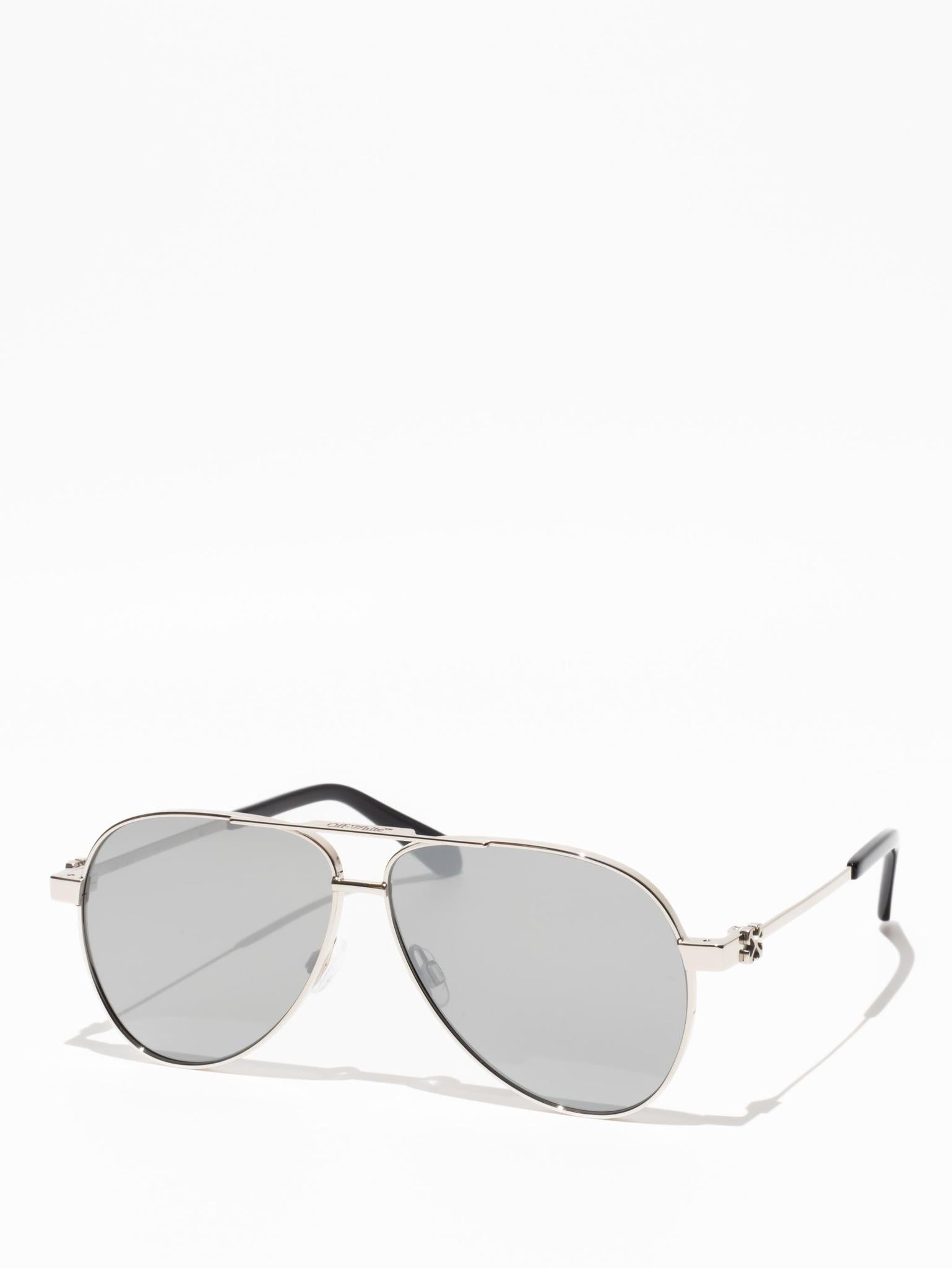 These metal-framed sunglasses feature a teardrop, pilot-inspired silhouette with a double bridge and silicone nose pads. The arms host arrow logo plaques and acetate tips for comfort.