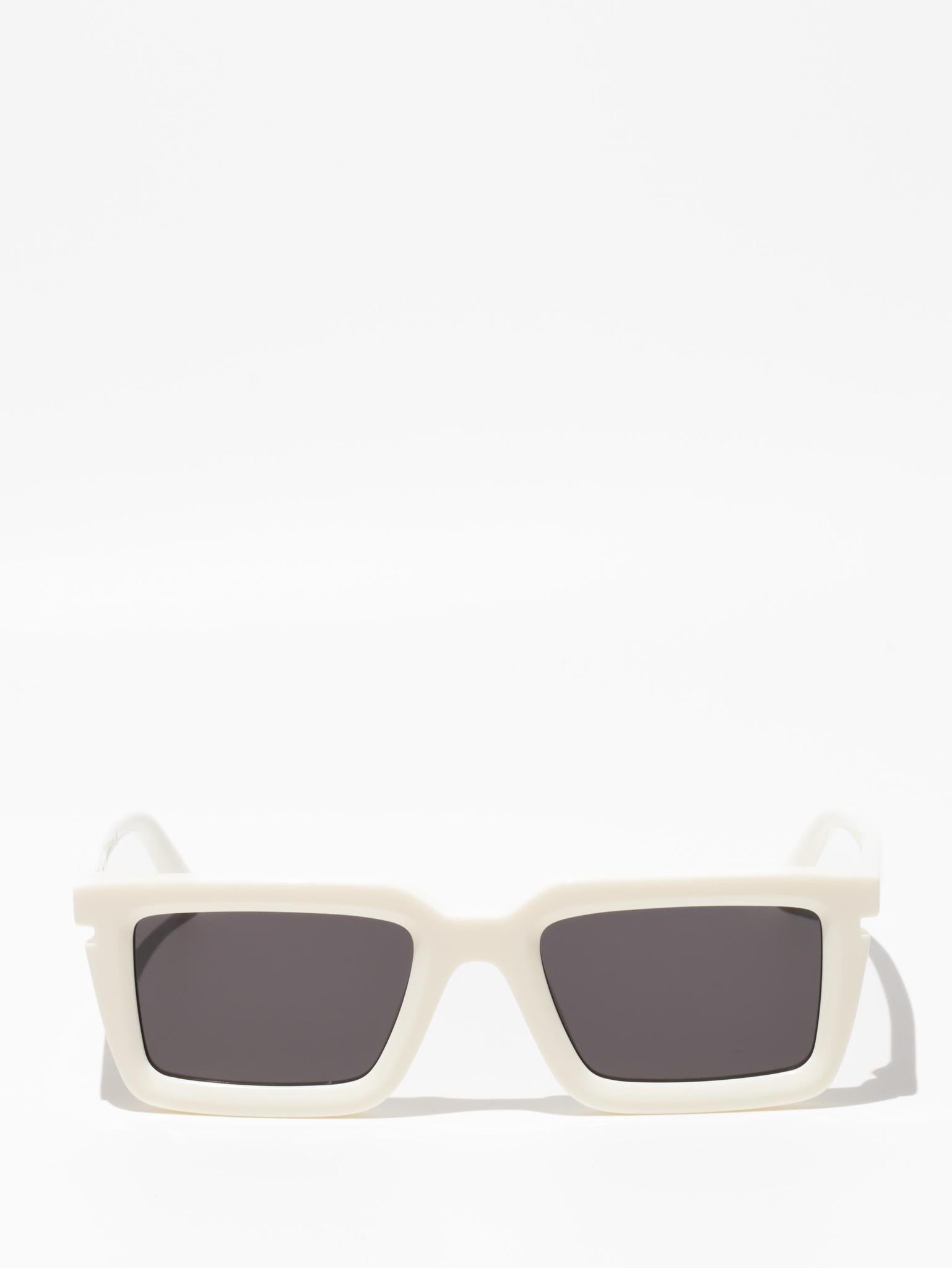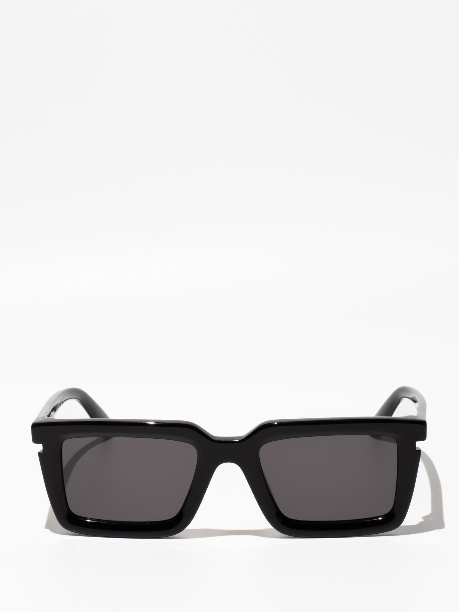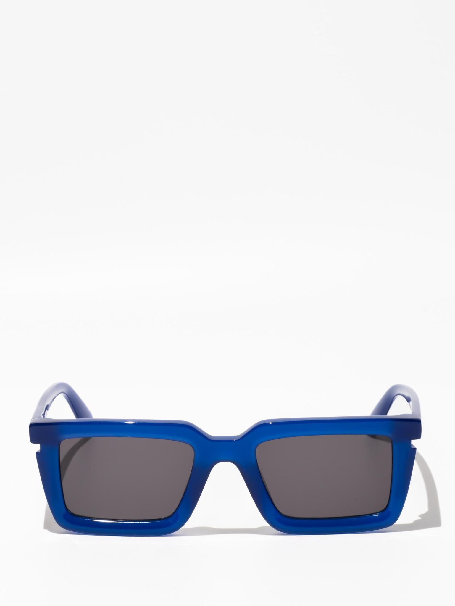 These acetate sunglasses feature a square silhouette with a faceted finish and cut-outs at the temples. Side spoilers host engraved logos. Made in Italy.