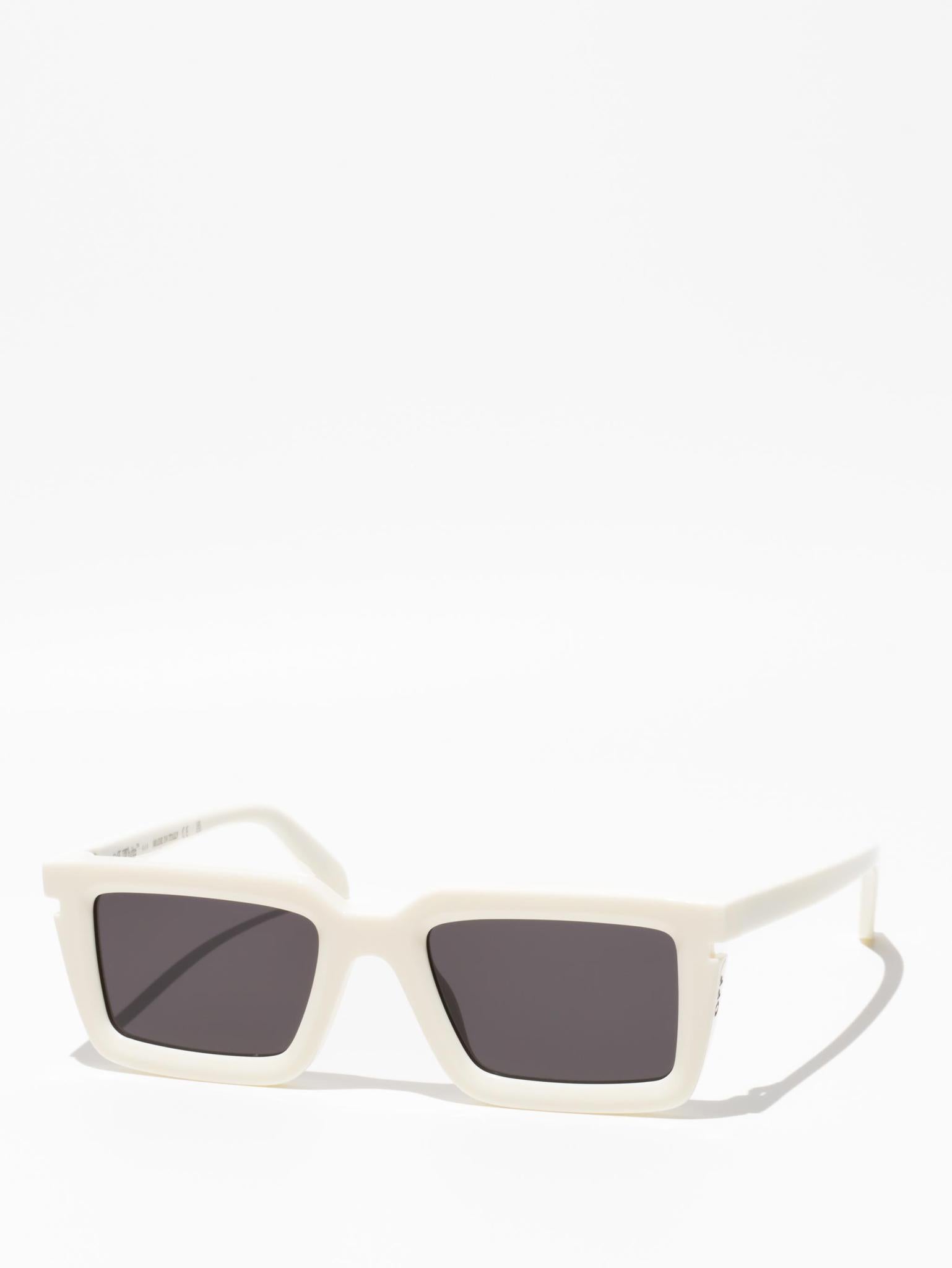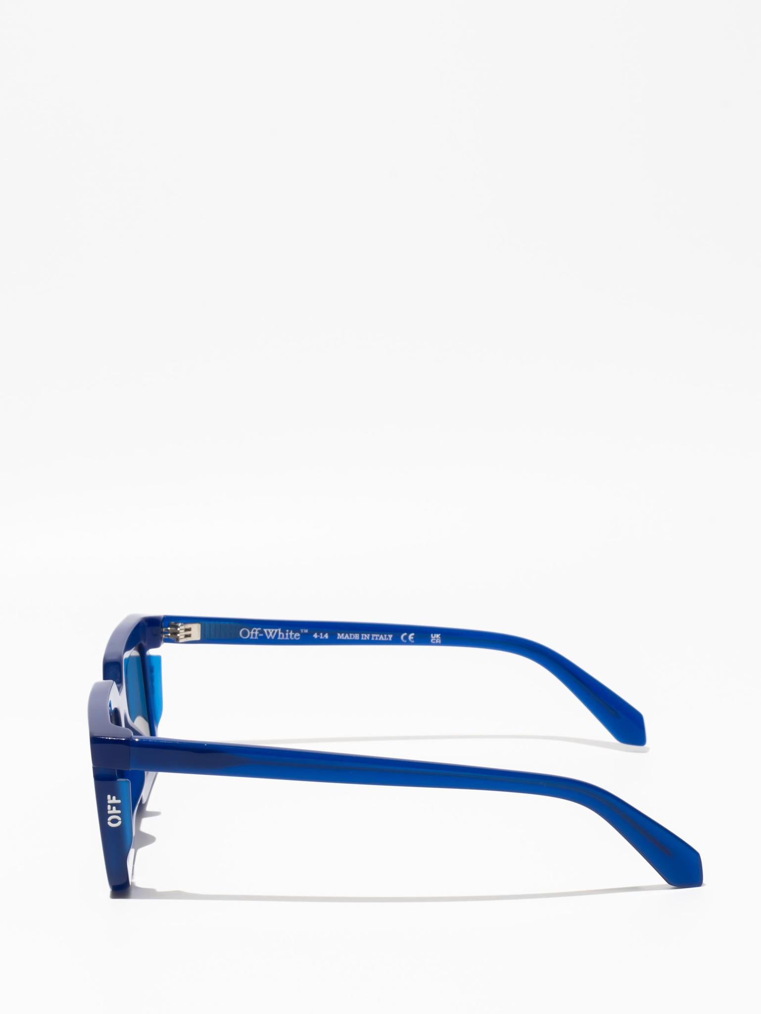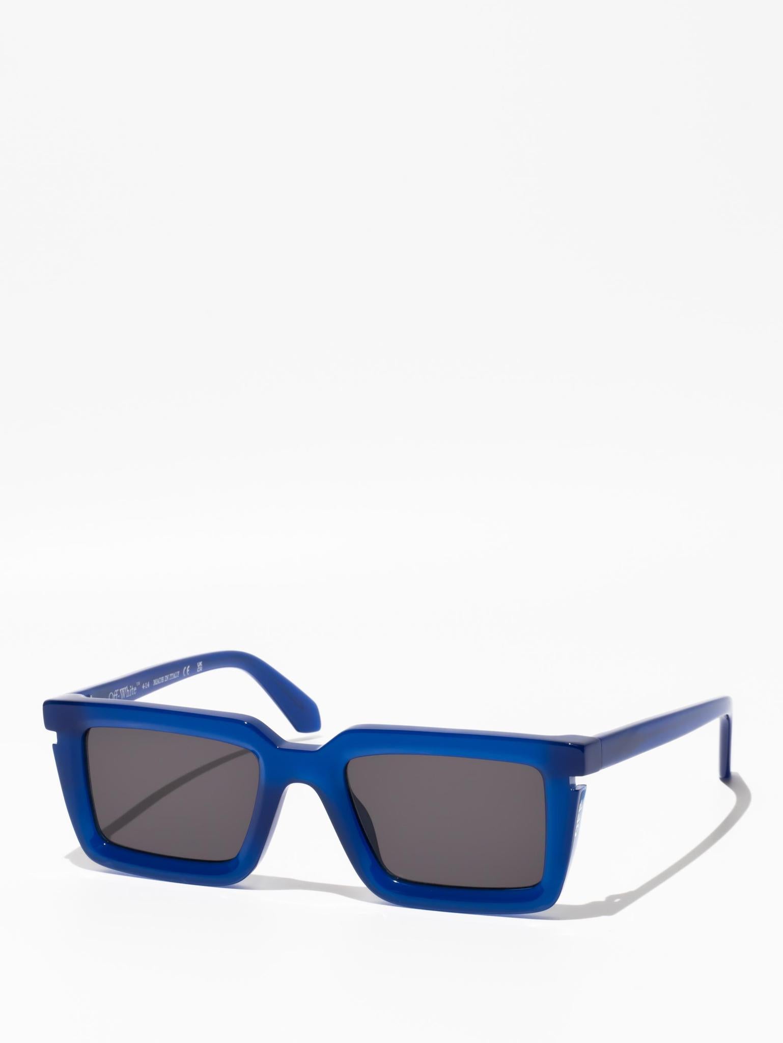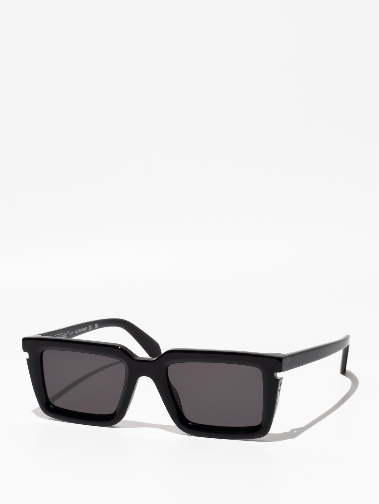 These acetate sunglasses feature a square silhouette with a faceted finish and cut-outs at the temples. Side spoilers host engraved logos. Made in Italy.