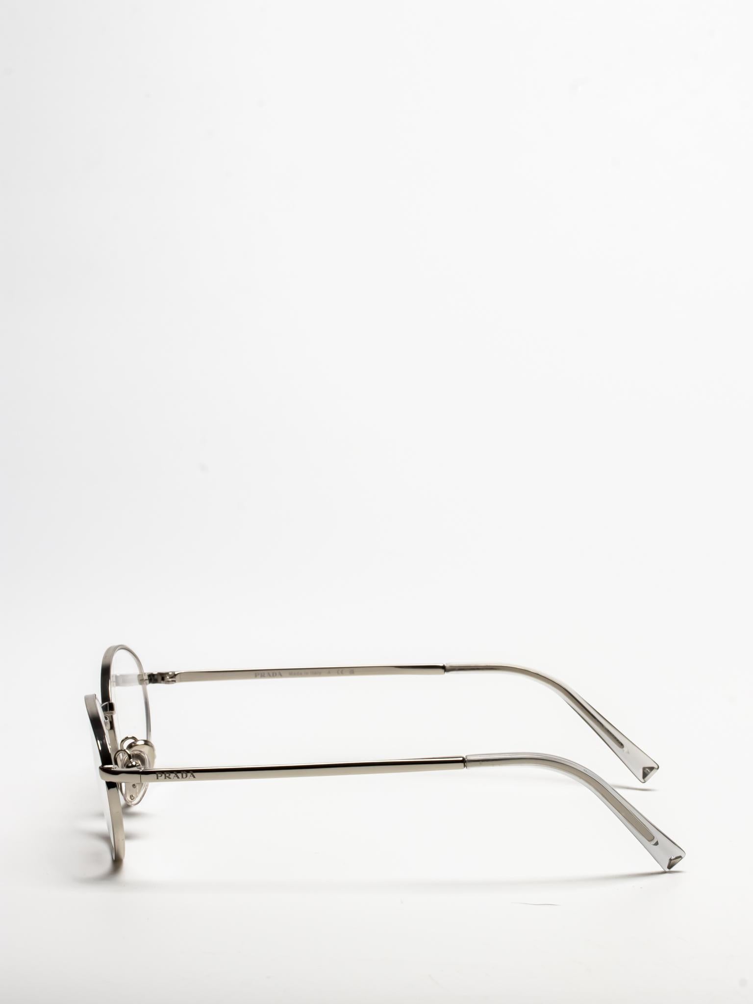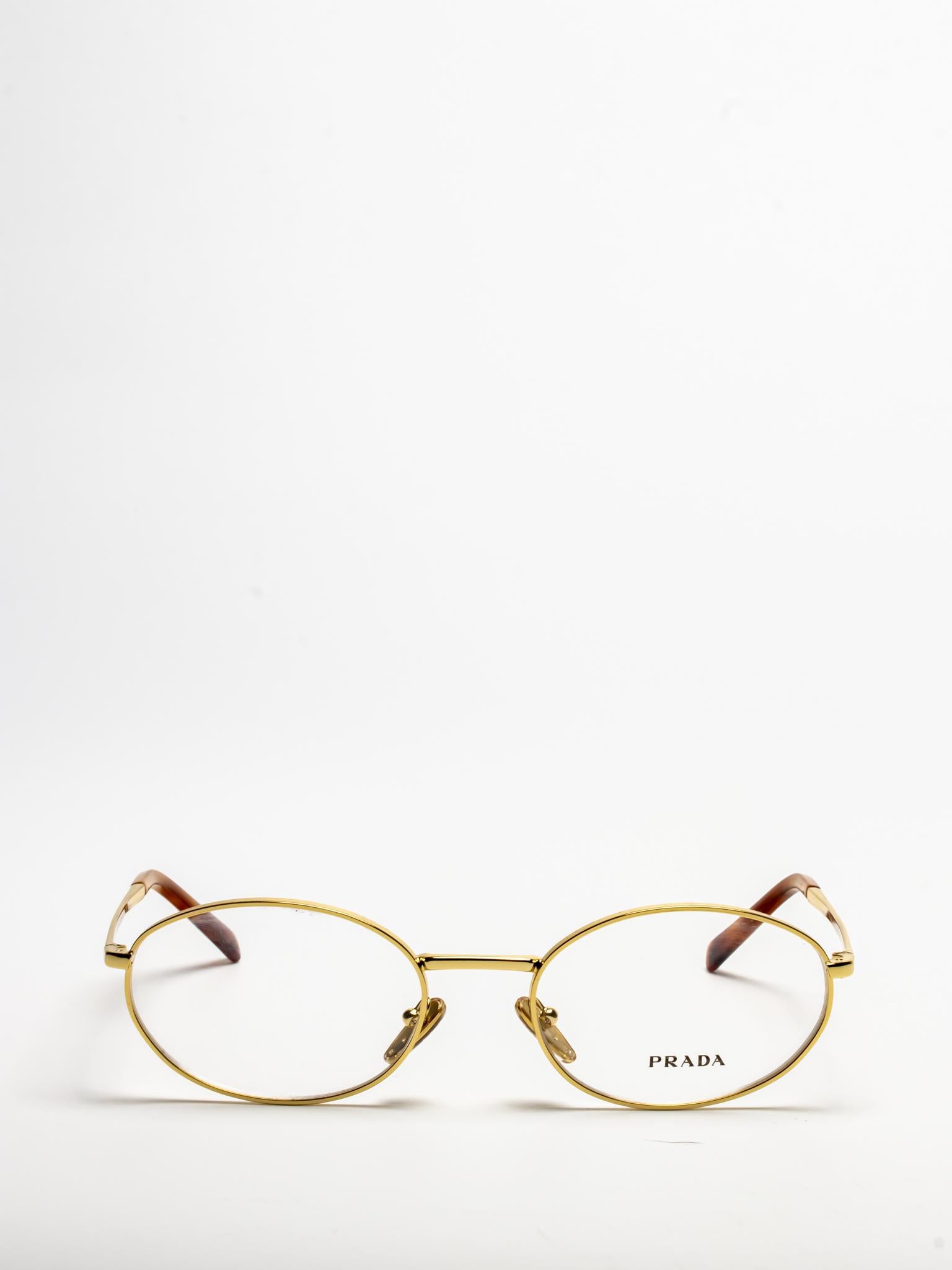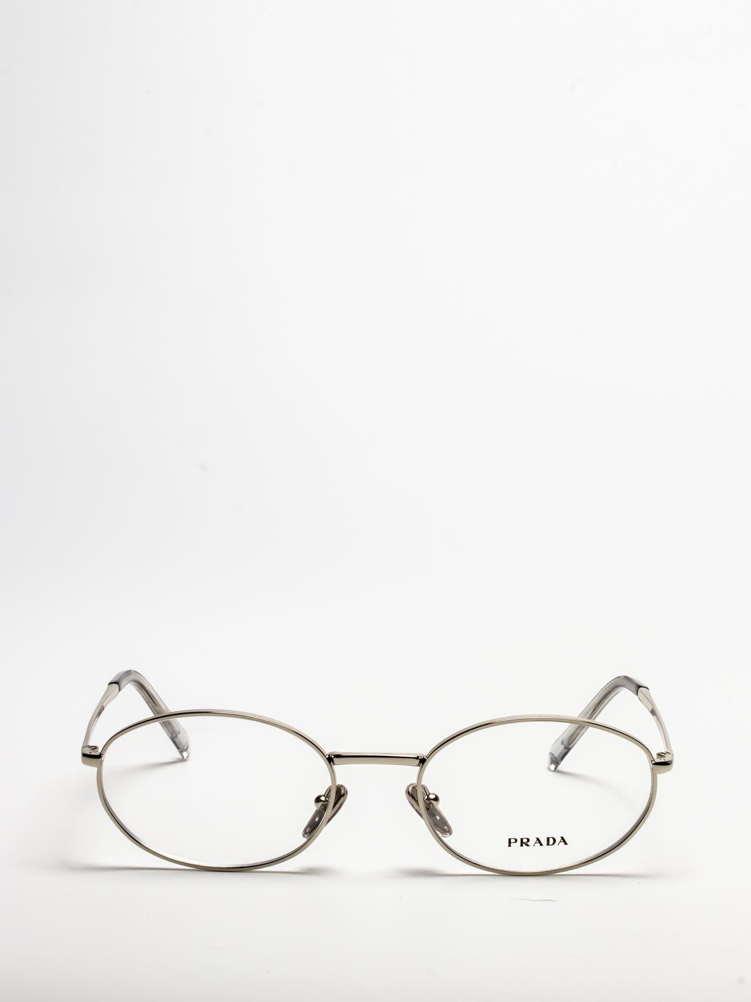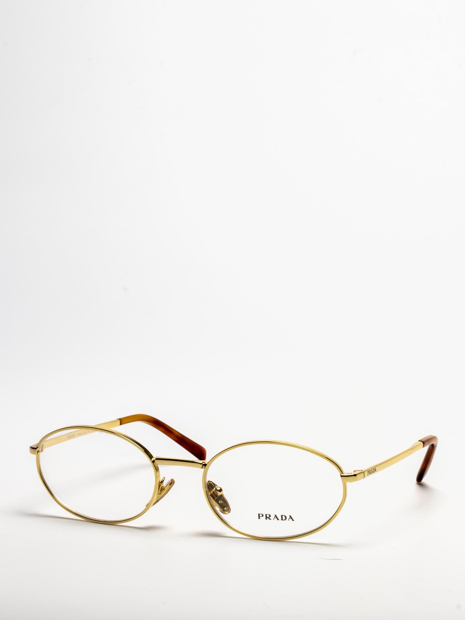 An understated oval shape, coupled with a minimalist temple design, can still make a statement—particularly one of sophistication. Prada highlights its lettering logo along the thin temples and adds a triangle to each acetate temple tip for subtle added branding.
