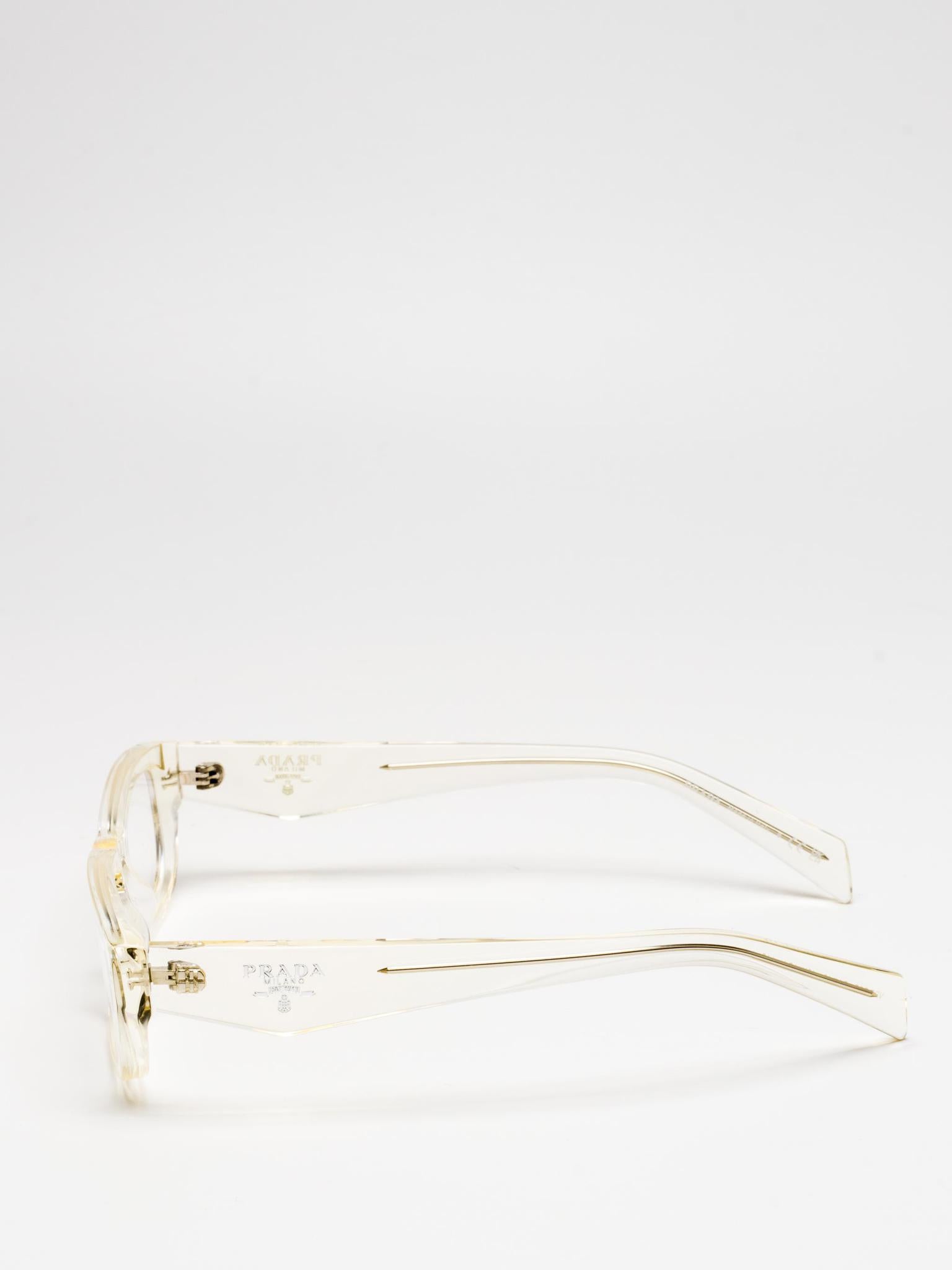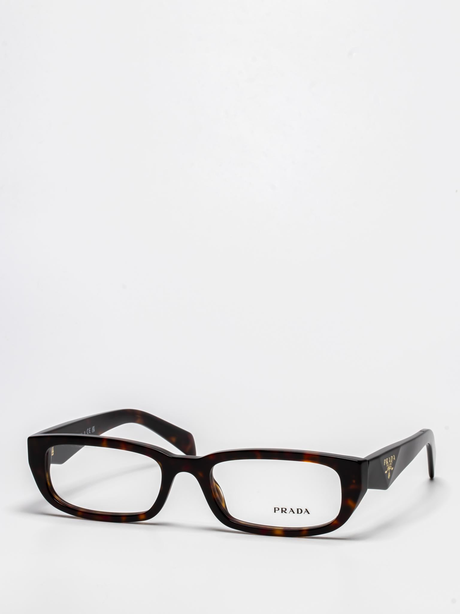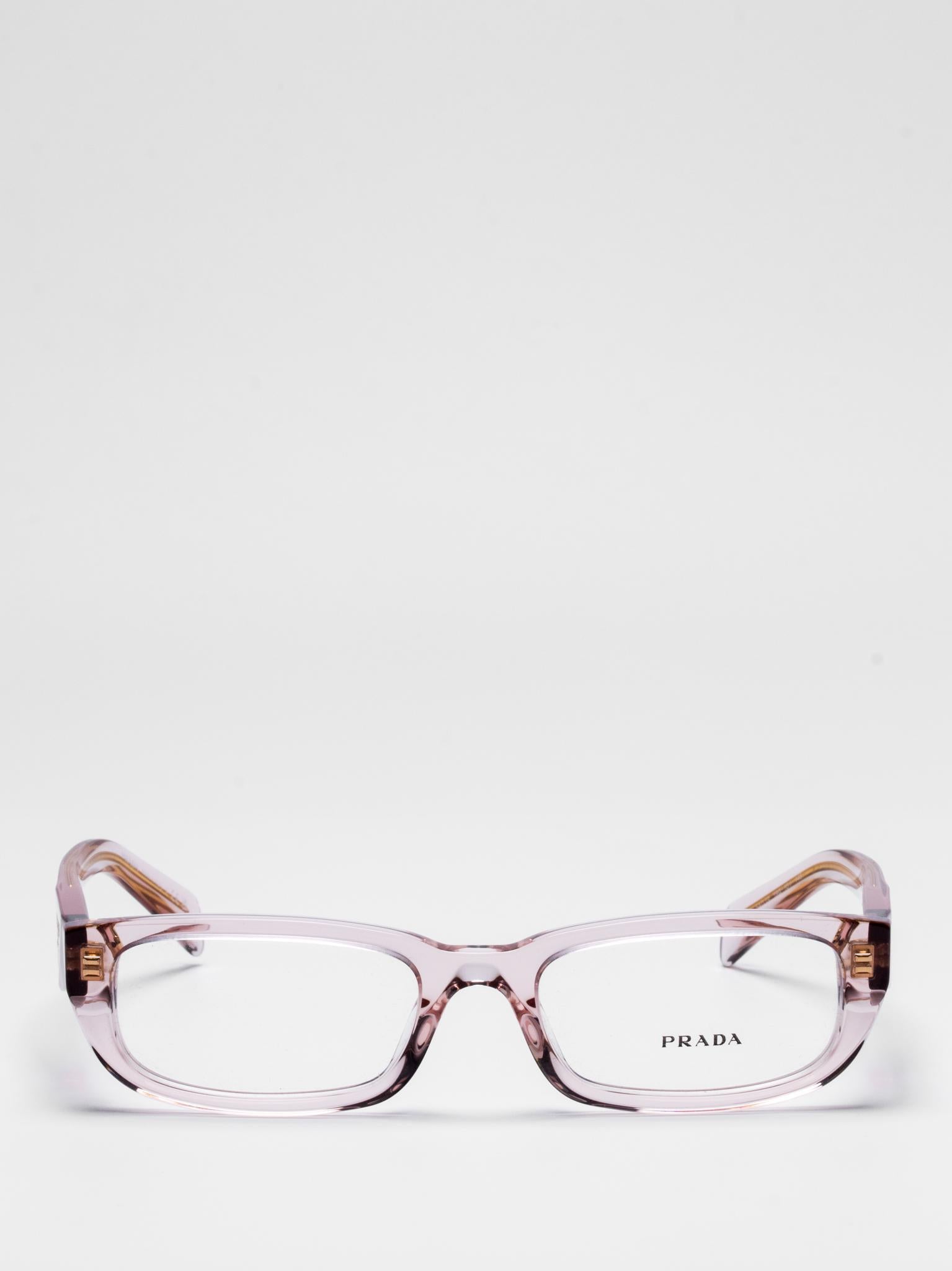 The triangle, a legendary silhouette for Prada, is highlighted through subtle faceted surfaces on the temples of these optical glasses. Featuring a narrow rectangular shape and finished with the Prada logo, this acetate design is both timeless and modern in any colorway. A narrow rectangular acetate design with faceted temples that highlight a triangle shape where the logo can be seen.