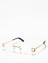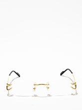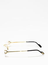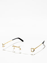 New modern execution of the C Décor aesthetics strongly linked to its historical DNA. Rectangular rimless construction embellished by the iconic C decor detail on the hinge. Acetate temple tips enriched by the Cartier logo plaque.