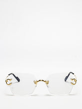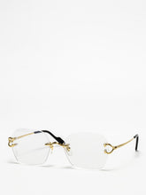 Revamped version of the iconic Décor C metal aesthetic, characterized by the Godron icon along the entire temple. Feminine shape in rimless construction for a refined and iconic look. Iconic Décor C detail being a functional and aesthetic element of the metal hinge. Precious finish in gold or platinum and acetate temple tips with Cartier logo tag to ensure comfort.