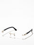 Contemporary yet sophisticated reinterpretation of the historical Décor C temple in combi version. Timeless and easy-to-wear rimless rectangular shape. Iconic Décor C detail perfectly inserted in the acetate temples as aesthetical and functional element of the hinge. Precious finish in gold and platinum combined with varied acetate colours.