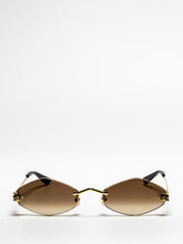 Modern and contemporary hexagonal edgy shape enriched by the biting Panthère head for a strong and unisex look. Geometric lines of the head, are replicated also in the shapes of the lenses and the bridge. Panthère head enriched by enamel details ton-sur-ton with the lens colour and precious finish in gold. Acetate temple tips to guarantee comfort.