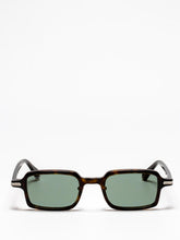Cartier CT0539S 002 sunglasses for men and woman, featuring dark tortoiseshell effect rectangular recycled acetate frame and green with a golden flash nylon lenses.