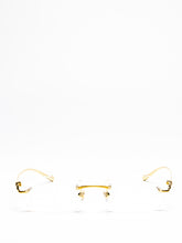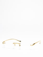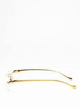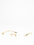 Classical rectangular rimless feminine shape, featuring the emblematic Panthère de Cartier for an audacious and glamorous design. Precious pouncing panther sculpture on a slender temple with pure and dynamic lines. Precious finishes in gold, platinum or ruthenium. Precious finishes (gold, platinum and ruthenium) adorning the décor and the bronze temples.