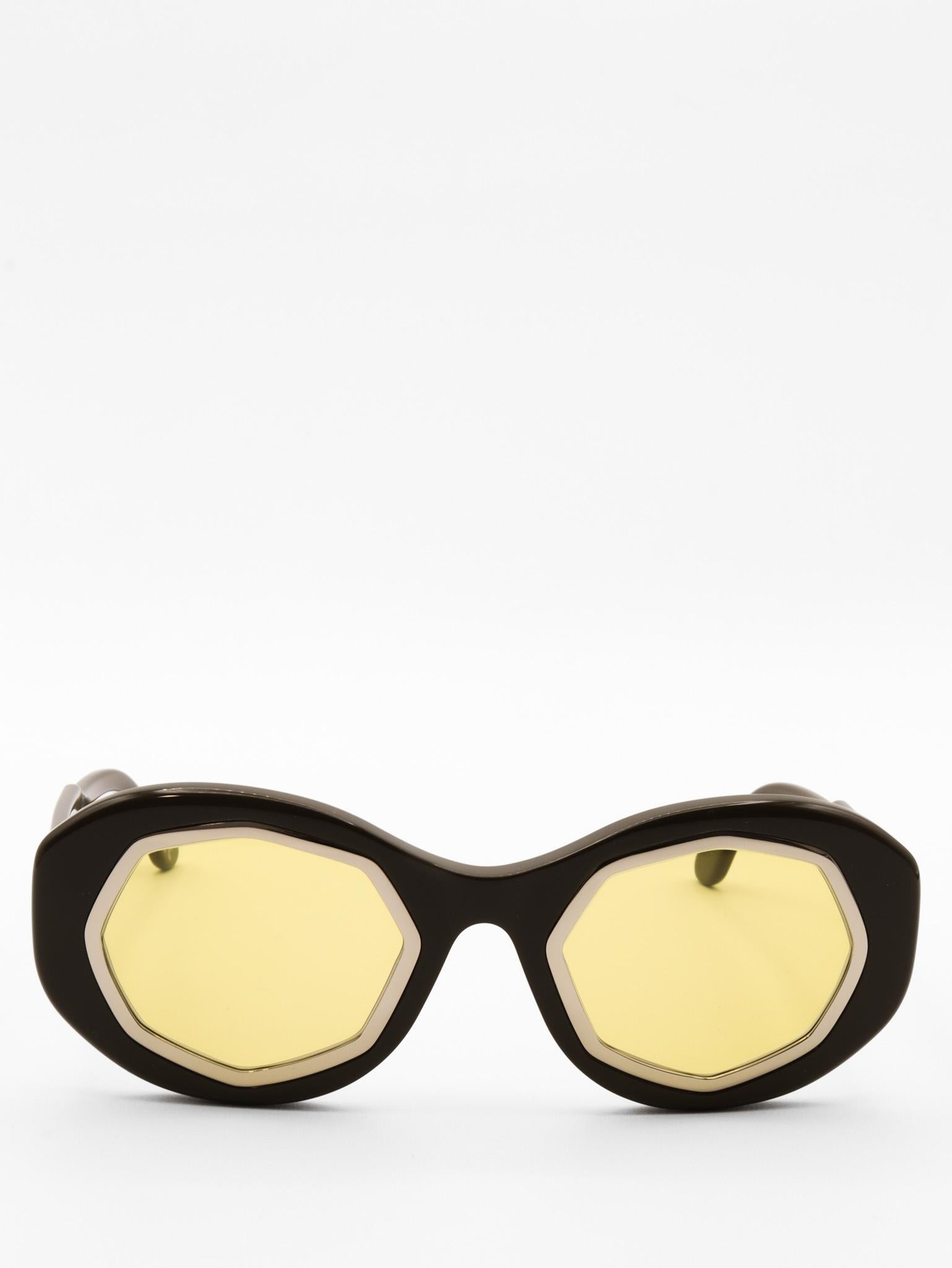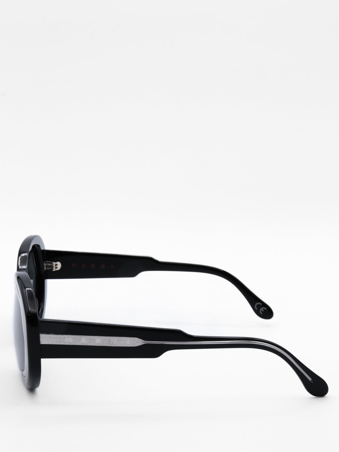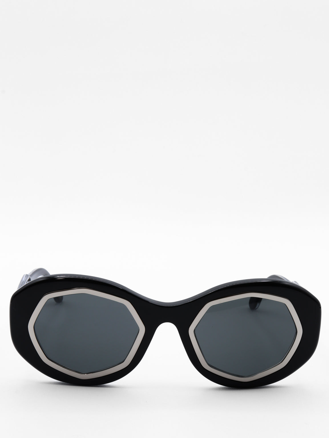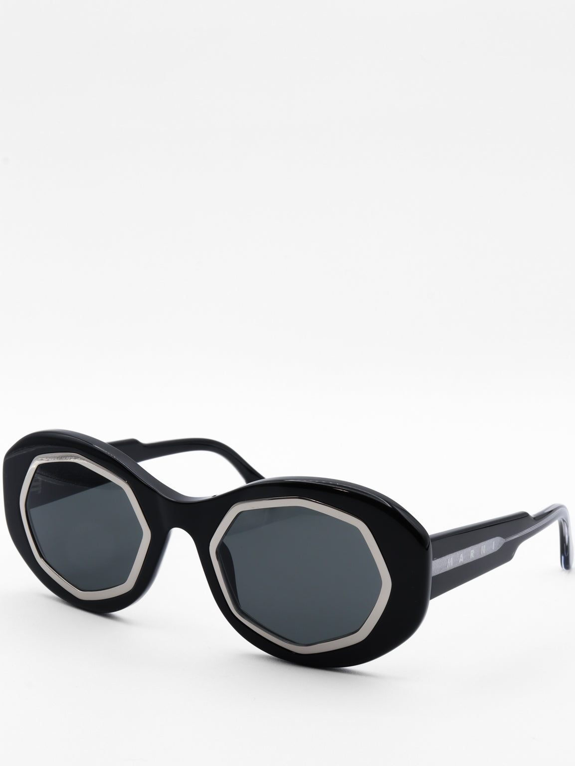 Mount Bromo reinterprets classic oversized frames for a new era. Cutting-edge stylistic references define Mount Bromo’s identity, at the intersection of vintage glamour and grunge chunky shapes. Exceptional craftsmanship elevates Mount Bromo’s design to an artful piece, with rings around the lenses encased within shiny acetate construction. This version features a black acetate with silver detailing and black lenses.