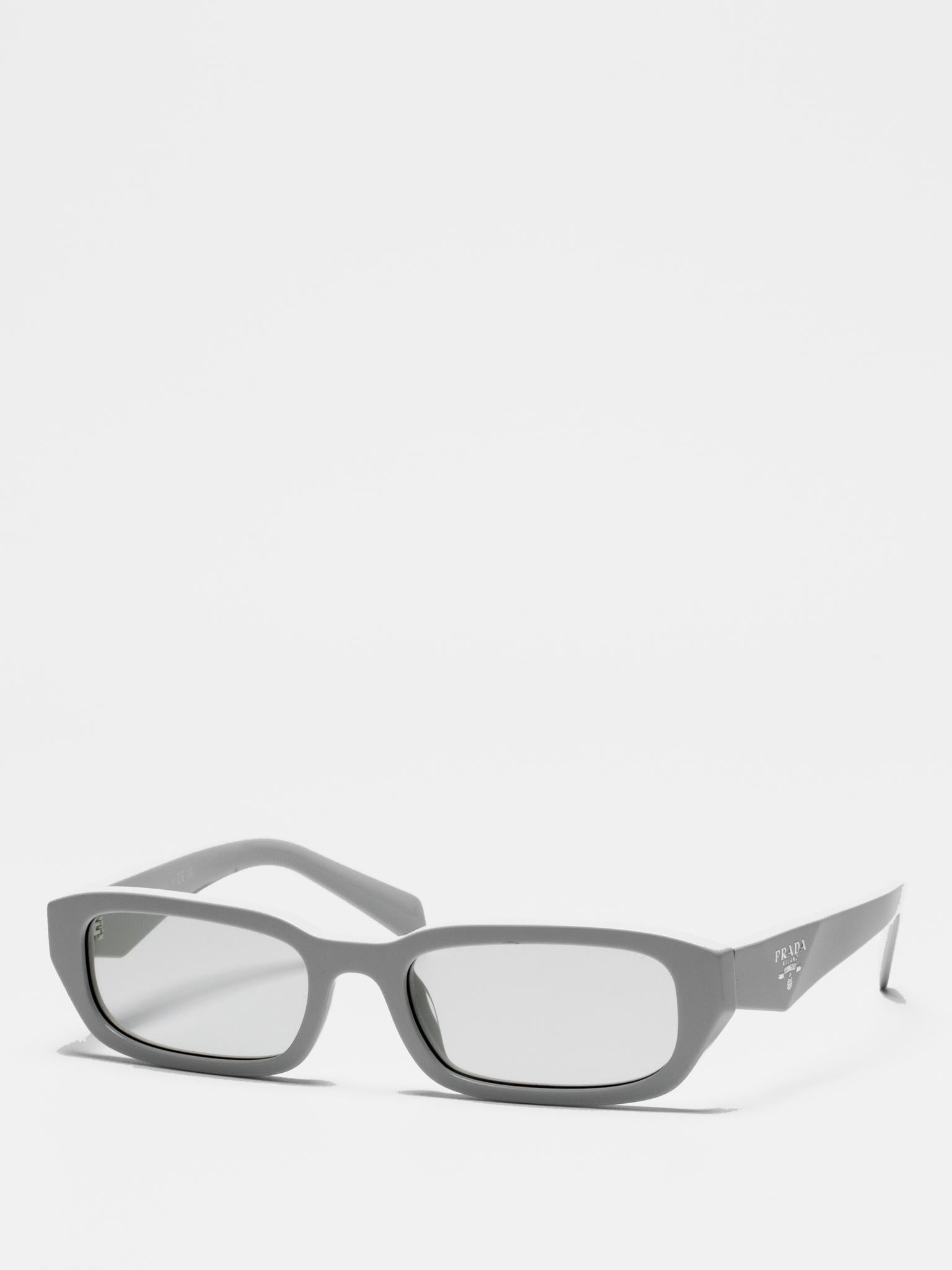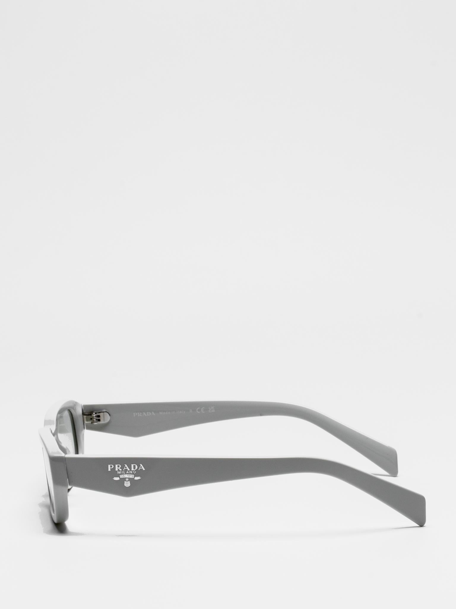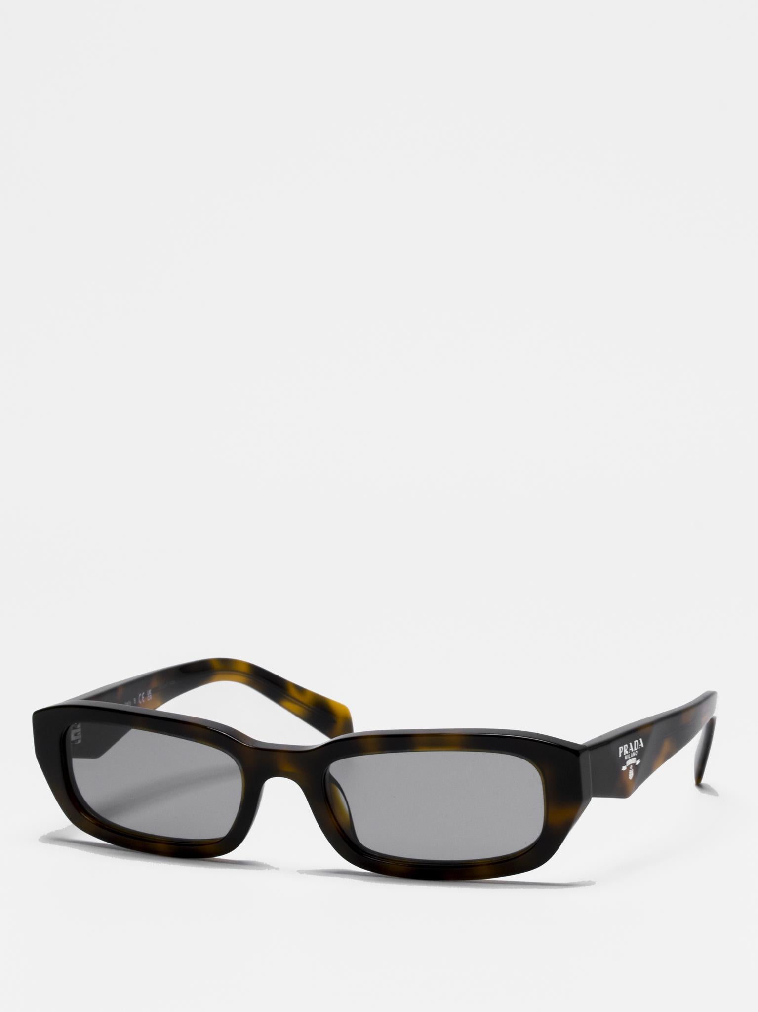 The faceted acetate temples recreate the iconic triangle shape and feature the Prada logo within. A bold and narrow acetate design, available in a full-fitting version with gooseneck nose pads, comes in a range of colors including noteworthy lens choices.