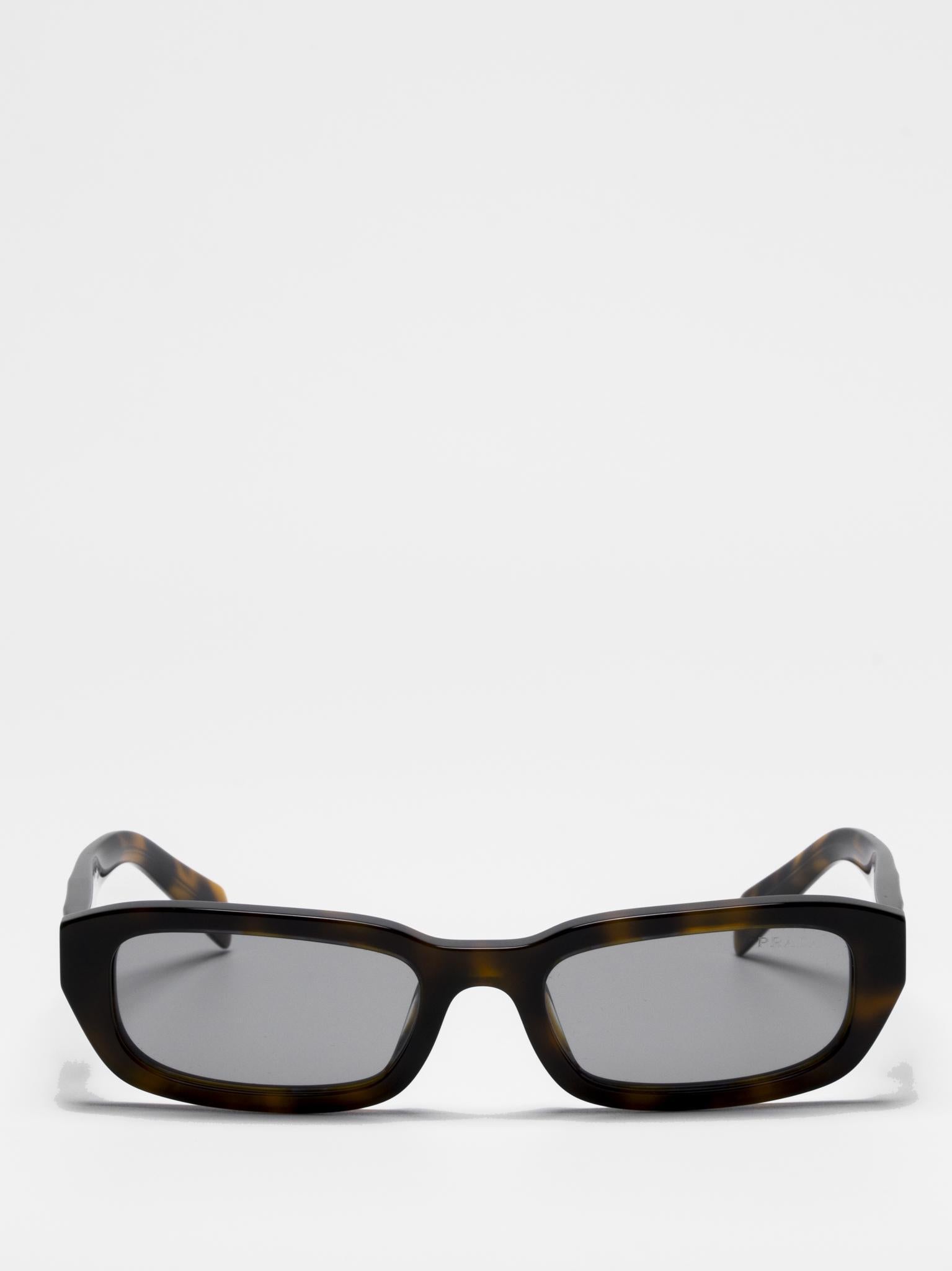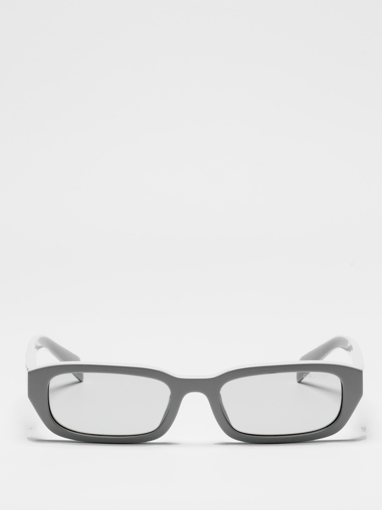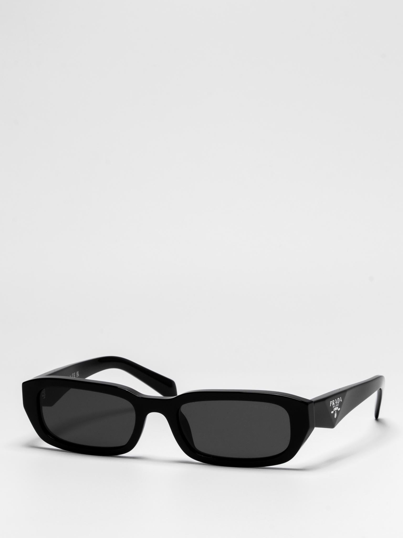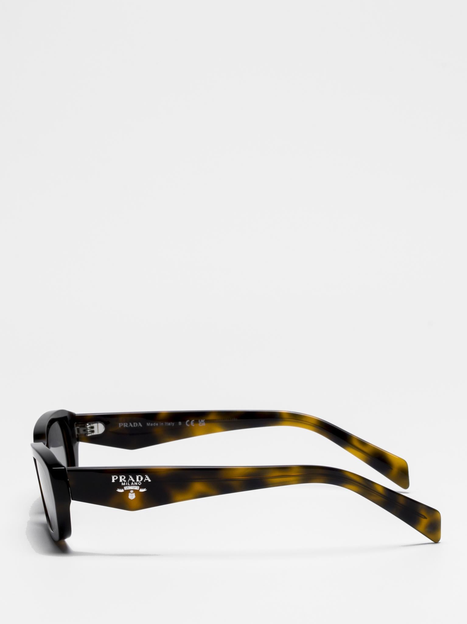 The faceted acetate temples recreate the iconic triangle shape and feature the Prada logo within. A bold and narrow acetate design, available in a full-fitting version with gooseneck nose pads, comes in a range of colors including noteworthy lens choices.