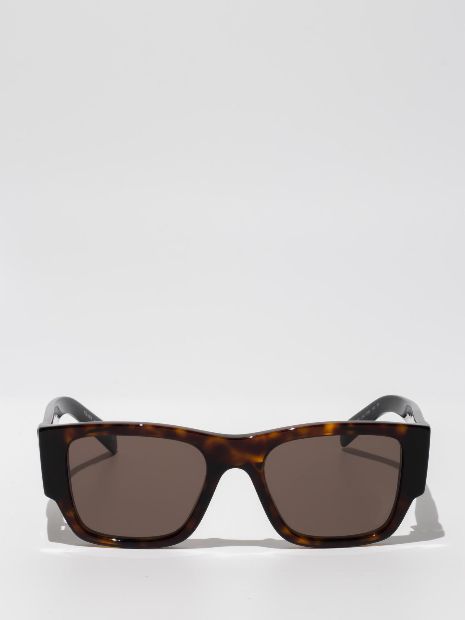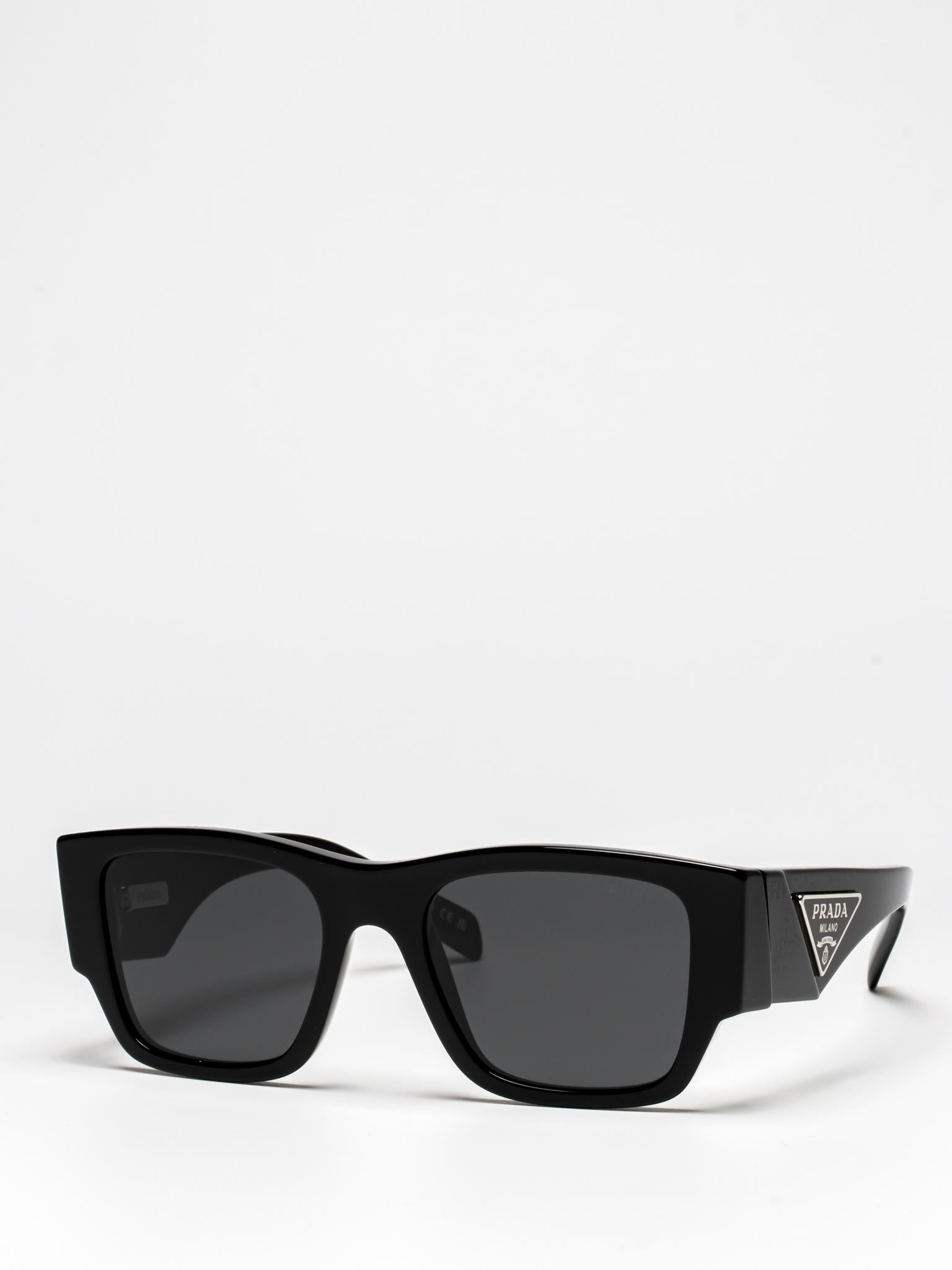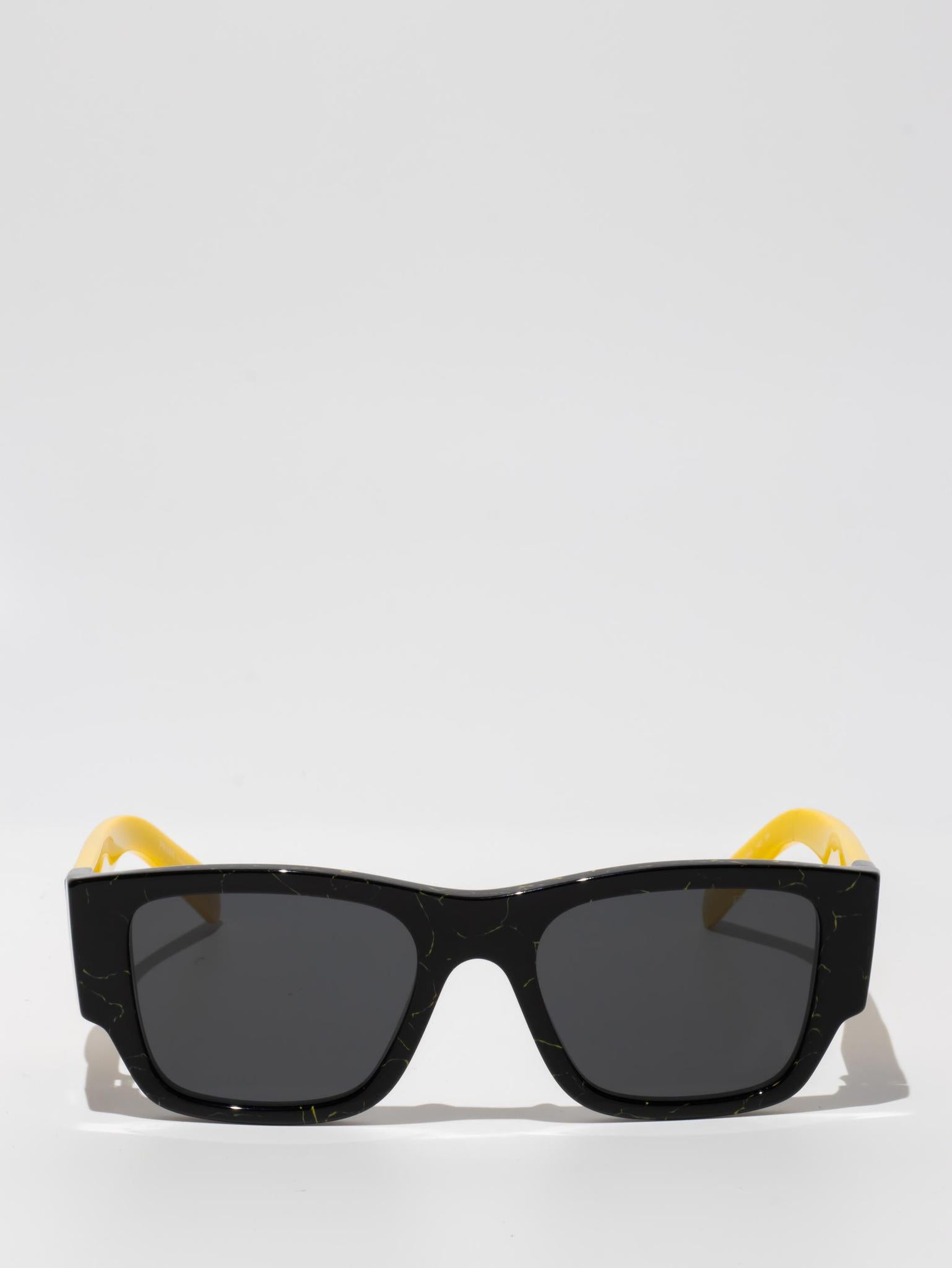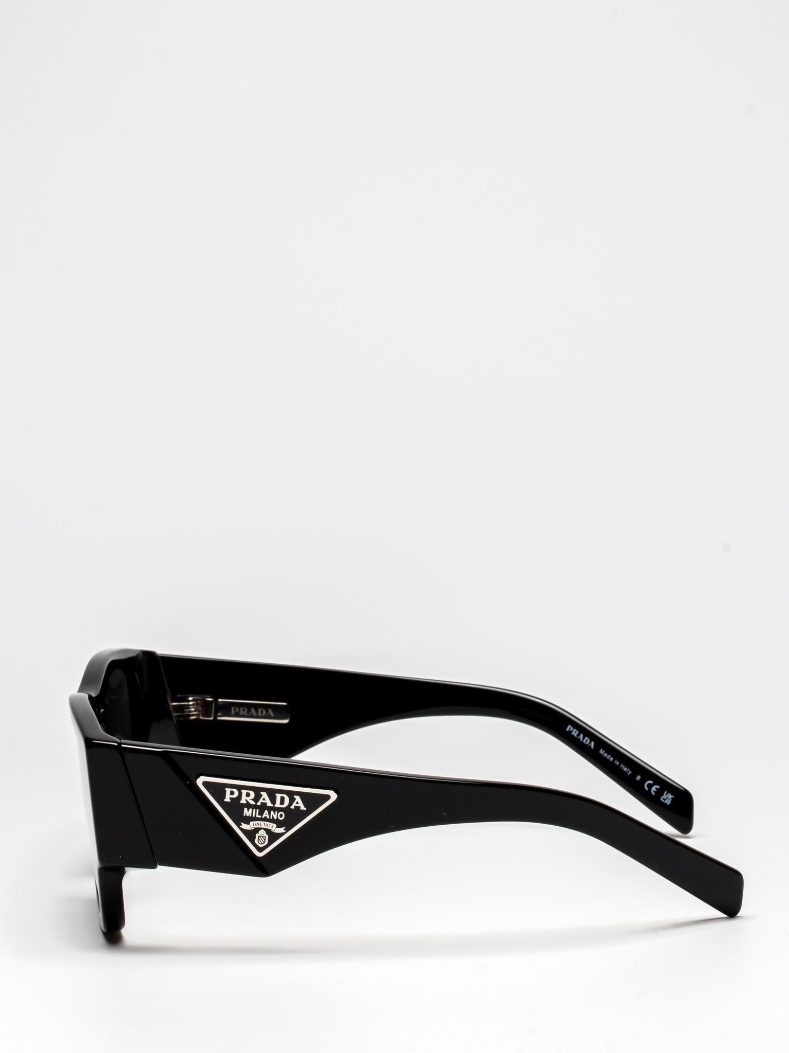 Acetate sunglasses from the Prada Symbole collection. The bold rectangular frame is composed of a refined combination of acetate layers highlighted by contrasting colors on the lens rims. The three-dimensional workmanship on the temples features an iconographic interpretation of the traditional Prada triangle logo.