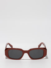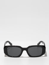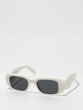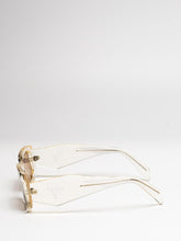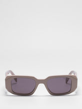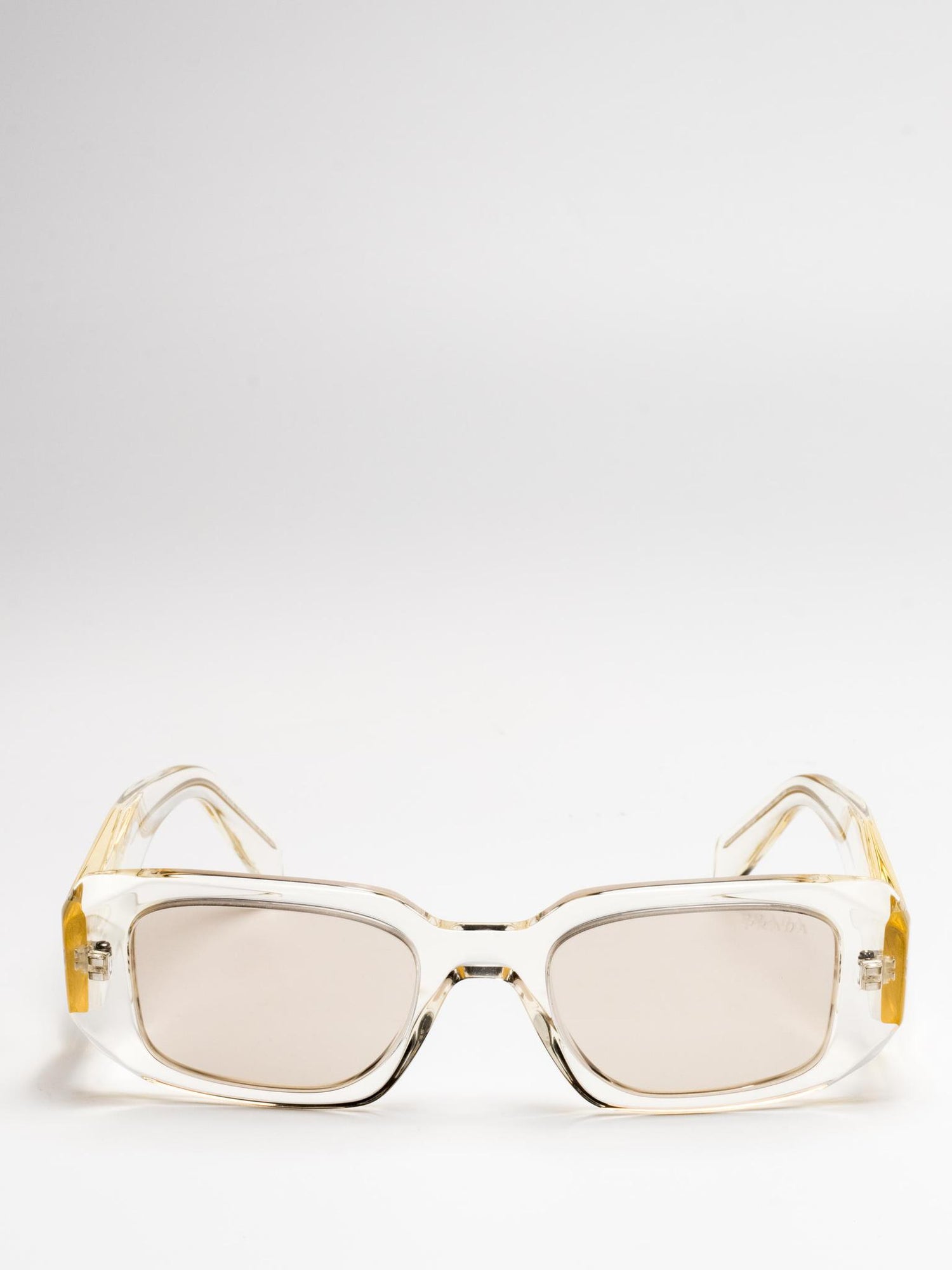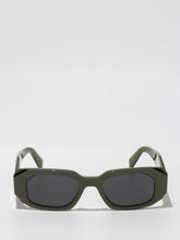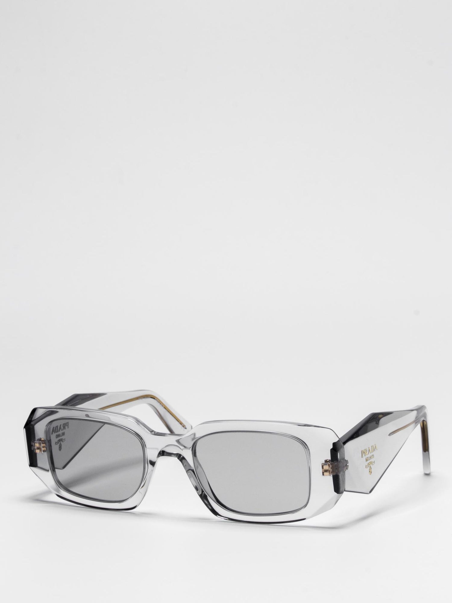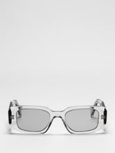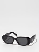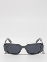 Acetate sunglasses with an oversized, geometric design. The bold frame front has an avant-garde silhouette defined by the extreme angled cut of the outer corners. The three-dimensional design of the temples is decorated with an iconographic interpretation of the traditional Prada triangle logo.