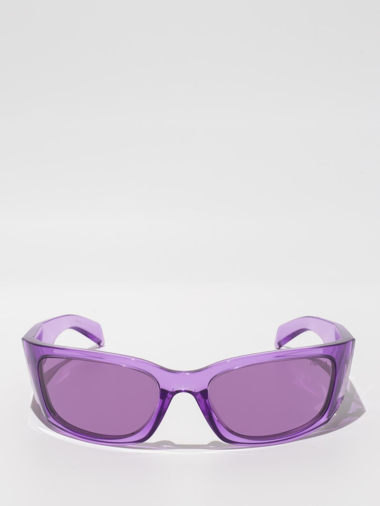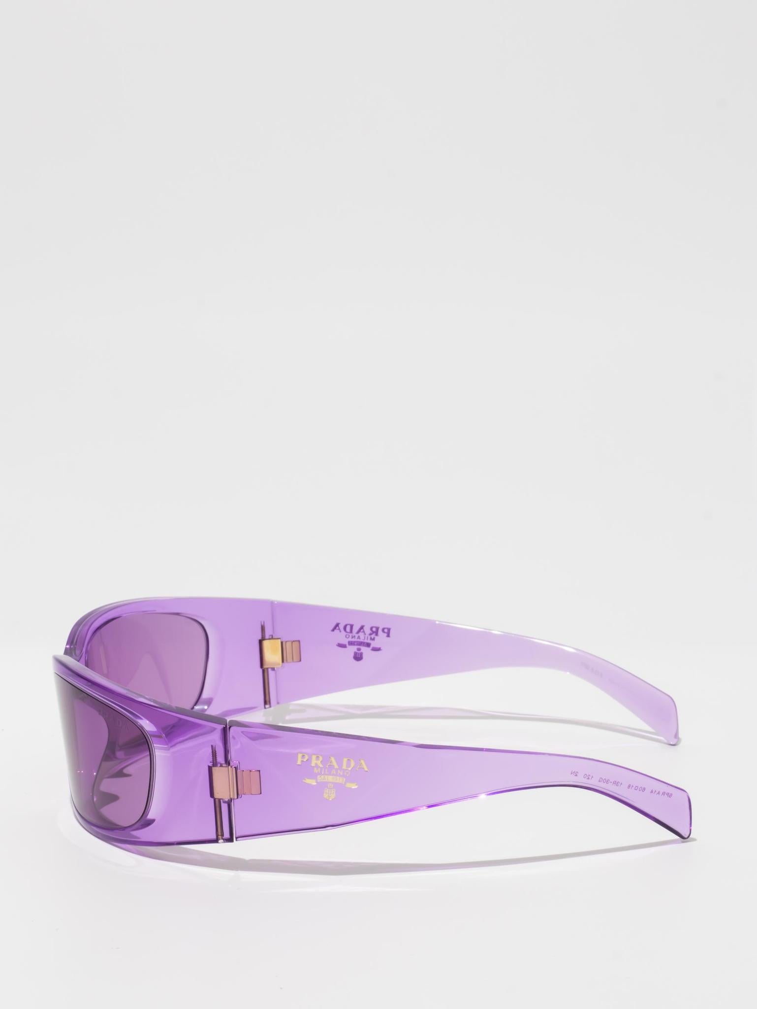 These new Prada Symbole sunglasses feature enveloping, contemporary lines. The three-dimensional crafting of the temples creates bold geometric shapes marked by an iconographic interpretation of the iconic Prada triangle logo.