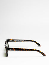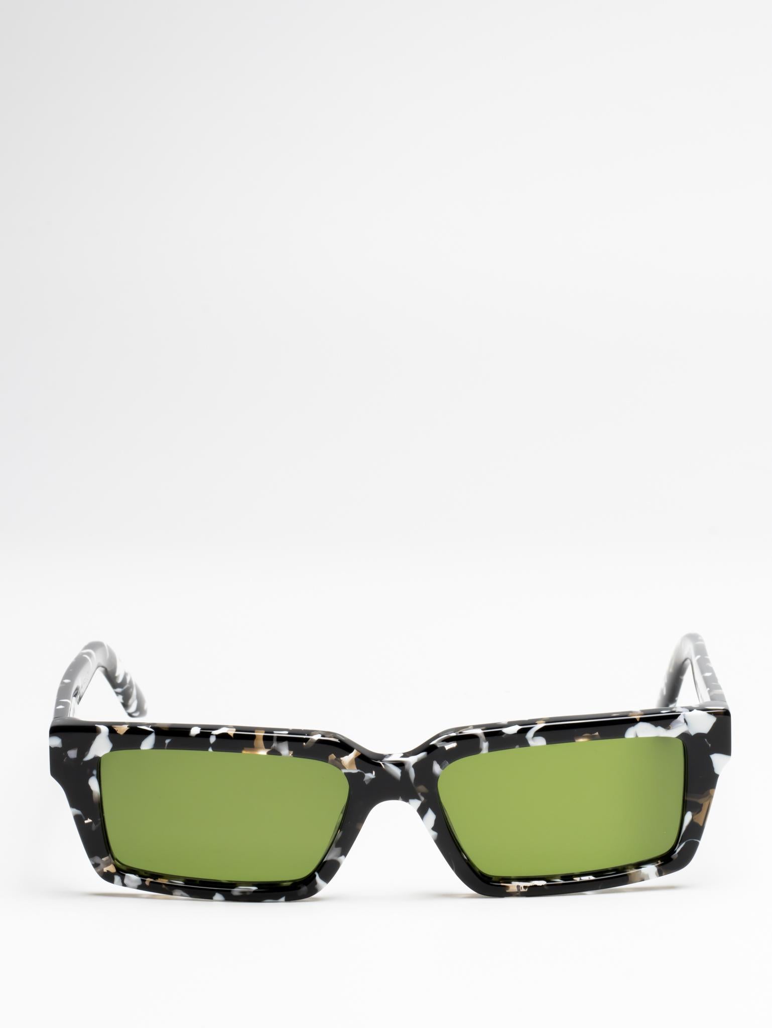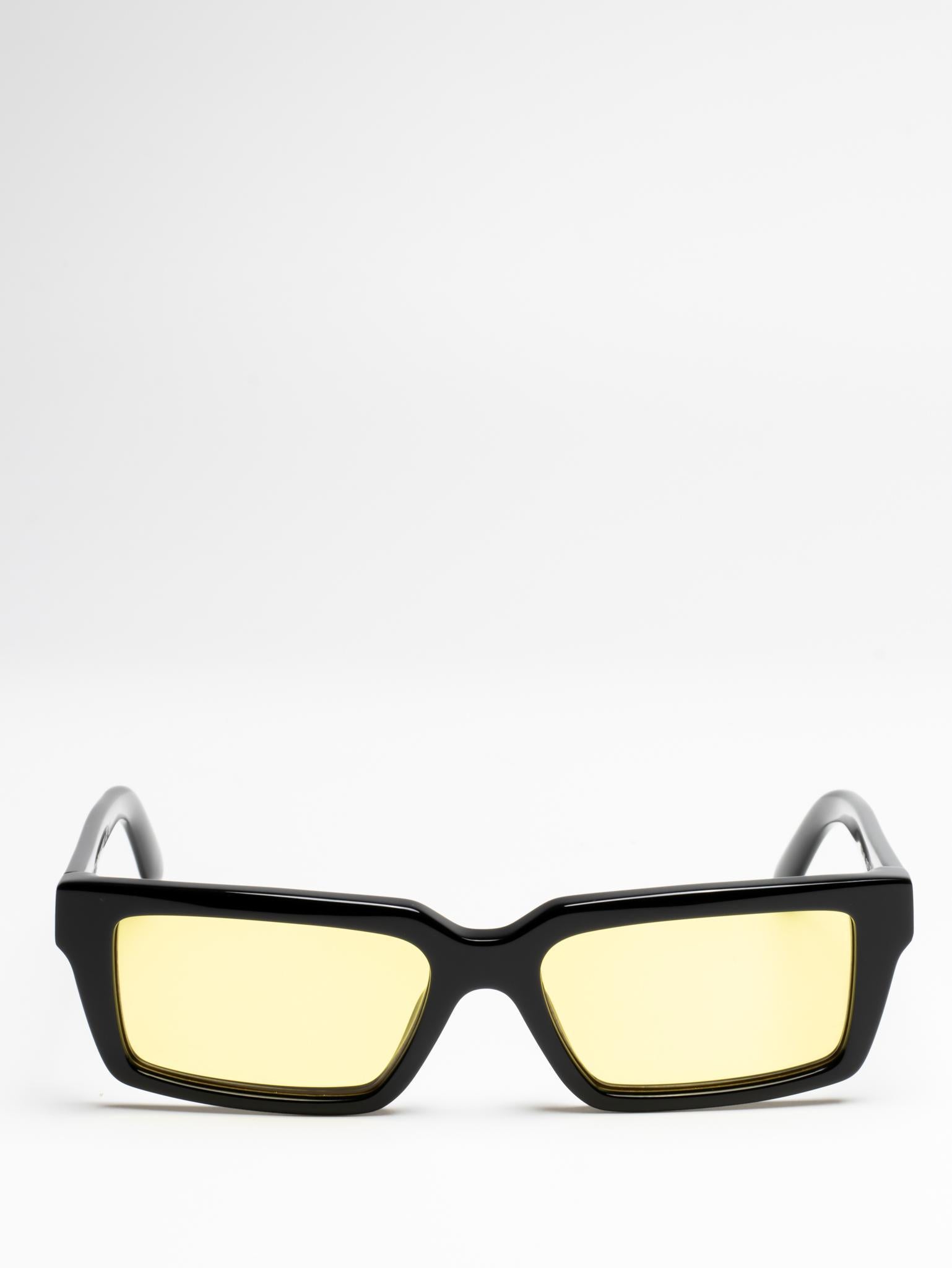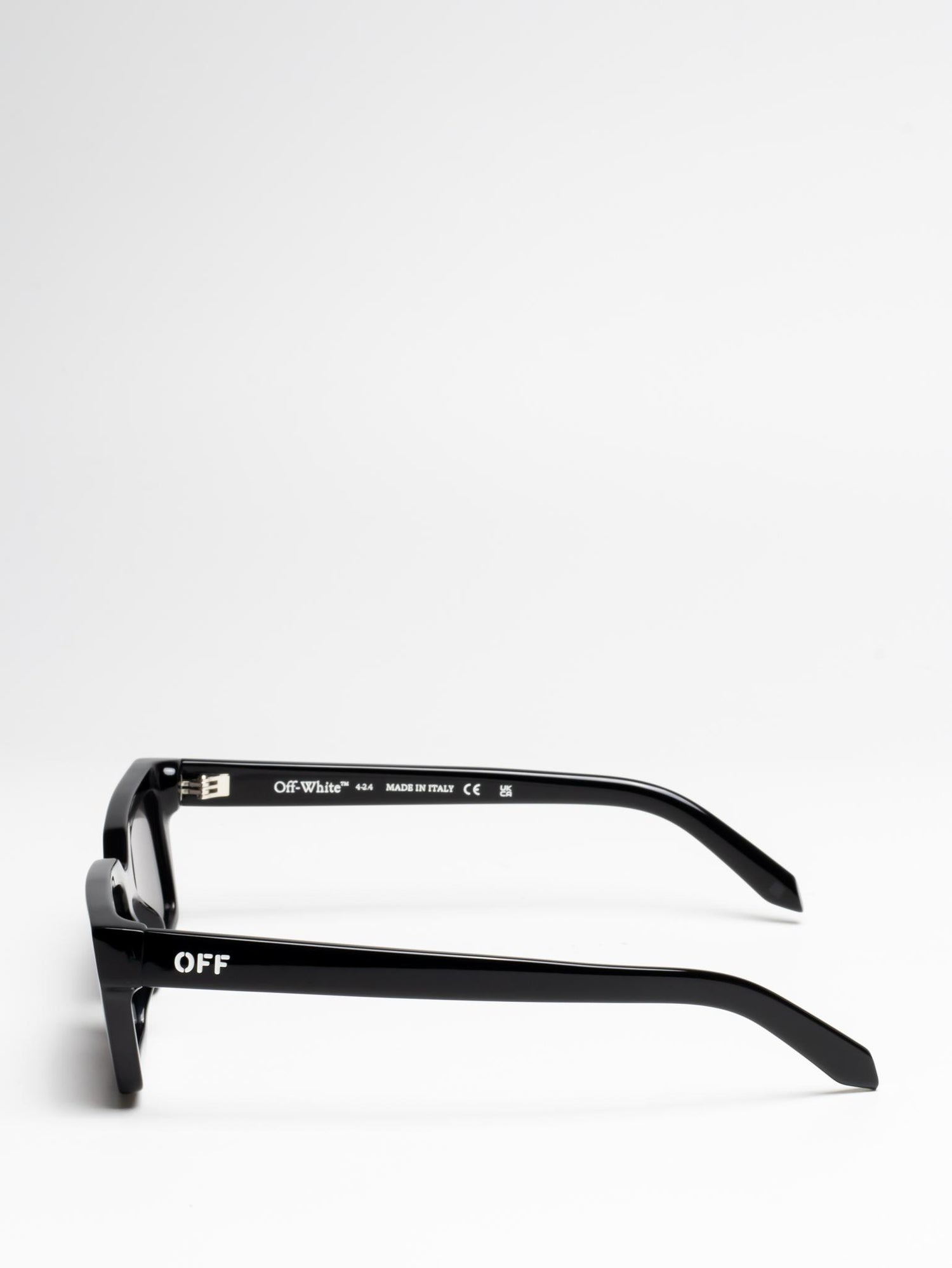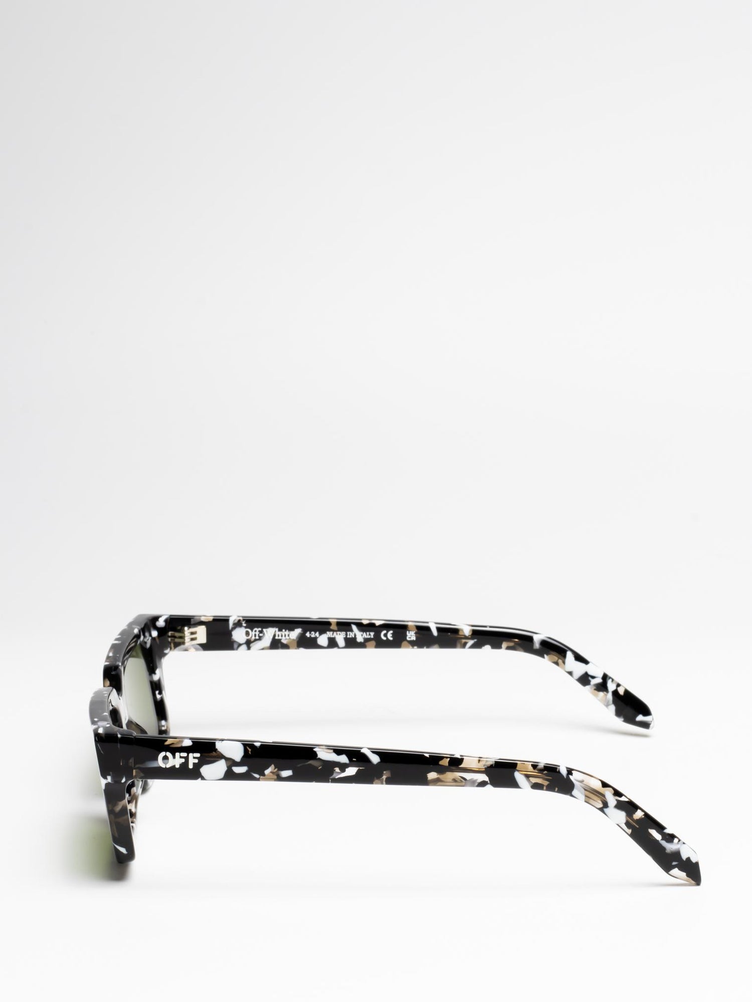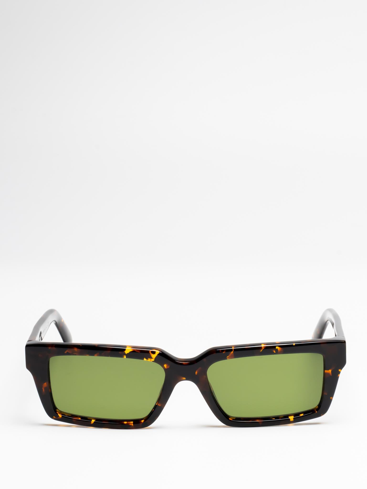These acetate sunglasses feature a slim, rectangular silhouette with slightly elongated sides and a lightweight finish. They are completed with engraved OFF logos on the arms. Made in Italy.
